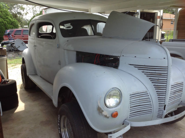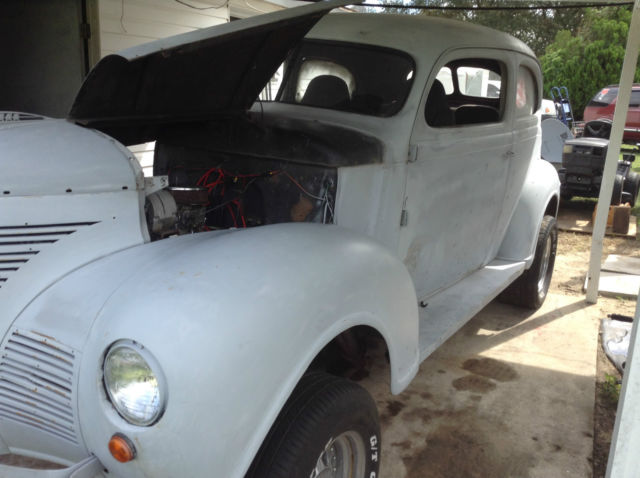 | 1939 Plymouth Sedan. Solid body primed ready to paint. 350 bored and stroked to 305 pushing 500 + hp 400 turbo tranny 556 olds rear end posi chevy straight front end. |