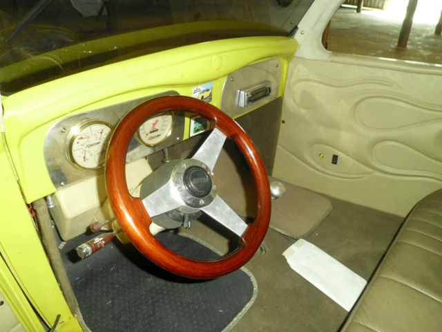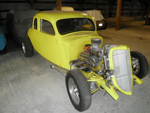 This is a very nice and running coupe that rides like it is on rails, nd has decent power and 4 wheel disc brakes.... The motor is a sbchev bored 60 over with eagle crank and rods, nd aluminum pistons, nd Dart aluminum heads, thumpy cam and Demon carb..the motor cost over 10 K to outfit. It has the 400 crank and makes 388 cubic inches The tranny is a 700 r4 overdrive The rear end is a 9 inch Ford with disc brakes, ront suspension is after market Mustang 2 with tubular A armsHas electric fuel pump and regulator There was no expense spared and it has the best of parts Interior is a 3rdseat from a van, nd the panels are Rod doors with leather embossed over them Most of it you can see in the pictures, ust call if you cant id something We are selling this to help pay for the new building we just bought for Street Rods, o we still LOVE it You will need to put on a 500 dollar security payment on paypal and the remainder is due by cash cashier check or money order in 7 daysShipping is up to the buyer, e will help load as far as I know it needs nothing but a good cleaning to be a trophy winner |