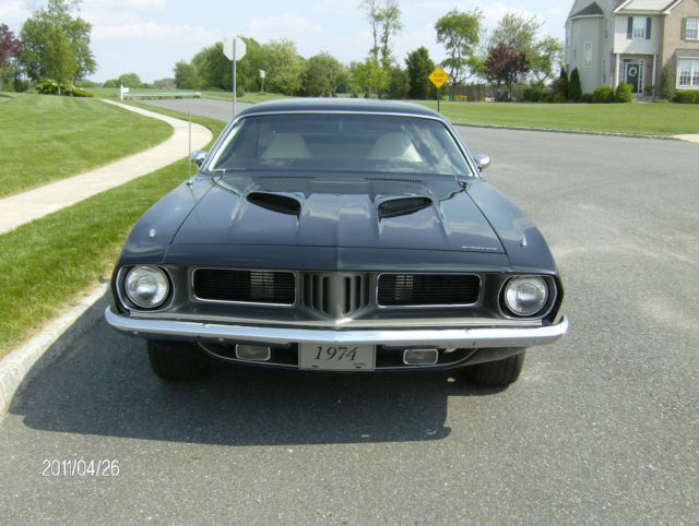 | 1974 Plymouth Cuda, door hardtop. I purchased this car about 5 years ago, s you see it. It was in the Barrett-Jackson auction but didn't met reserve. I purchased it, ut of the auction. From what I was told, 'm the third owner, t was an Arizona car all its life. No rust at all on the under carriage. Matching #'s car. Odometer has 68,000 miles on it, ot sure if that's true |