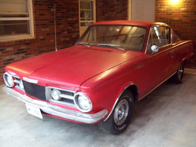 Selling our 1965 Barracuda at no reserve. We don't have much time left and loosing the Barracuda's storage pictured. This is the perfect project for the Mopar lover. We purchased the car from a gentleman that was turning it into a drag car, ut never did. He placed a posi rearend under it (don't know gear!), 727 trans and 318 4bbl motor from a 1970 Cuda, raction bars, riple gauges, aul exhaust and 14" rally wheels. At the time we bought it, e was getting ready to install a push button ignition and run battery cables to the trunk. We wanted the car more original and not for racing. So, e have a new OEM ignition switch (needs wired up) and placed a new battery tray under the hood with a battery (needs cables). The paint on the car is faded, nd there's bondo in the quarters. The floors are solid, he glass is good, nd the doors are great. The interior has custom set covers and dash pad. Carpet may be ok, f you just dyed it. Headliner has been sowed up, as pioneer 6x9 speakers in back, he console floor shifter is nice between the buckets and all the windows roll up and down as they should. It wouldn't take much to get this Barracuda on the road. The brakes will need some attention and a small amount of wiring the ignition. We no longer have a place to keep the car or time to work on it. Tires have great tread and Plymouth has clear KY title in our name. We do not deliver, s is, here is. This is a NO RESERVE AUCTION, igh bidder wins, ll bids are binding and final. Anyone with less then a positive 20 may have their bid retracted. We reserve the right to end this auction at anytime. Note: A non-returnable deposit of $500.00 is due WITHIN 24 HOURS AUCTION END through paypal. If you are unable to due this? Please don't bid. Thank you and God Bless...