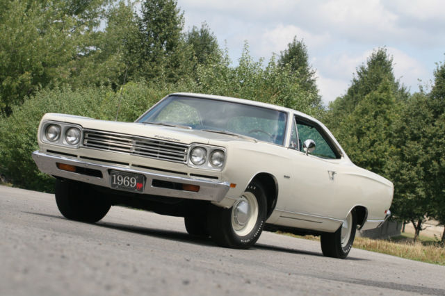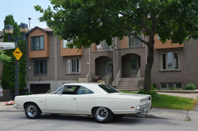 A pampered car for all of it's life, t now shows only 58 000 miles from new, onfirmed by previous titles. One owner for 35 years, ought in 2009 from a California collector. Completely original body panels, xcept for trunk floor pan that was replaced when the car was painted and detailed in 2006, n the original W1 Alpine White colour. New Roadrunner grille with Grey and Black accents added (Original included) Rare original Air Conditioning in working order, onverted to work with modern freon. Deluxe two-tone blue interior with new bucket seats with custom-ordered "Rallye" covers from Legendary with extra bolstering and matching rear seat (Original bench seat and rear seat, n good condition, re optional). Original Woodgrain Steering wheel added (original wheel included). Underhood detailed to show off the matching-number 318 motor, ual exhausts have been added for a surprisingly nice tone, ut again, he new original single exhaust is included. Recent Gel-type battery with original looking case.Interior heater core has developped a leak recently and has been by-passed, new heater core is included, ot yet installed. Car now has 14" steel wheels wth Dog-Dish hubcaps, hod with new Polyglas tires, ut 15" Chrome Magnum500 type wheels on new BFG Radial T/A tires, re also available. This car has been very reliable, have taken it on long trips such as to Moparfest (1 000 miles round-trip) a few times, nd have never had any second thoughts about going out for a drive in it. The automatic transmission works perfectly, nd the 2.73 rear gears make it a great car for long-distances. It has been featured in a magazine (copy included, long with original Broadcast sheet). The best B-body MOPAR you will find for the price! Car is located in Montreal, c, hipping can be arranged, s well as storage till Spring if needed. Importing a car from Canada to the US is simple, o special tariff or duty, nd paperwork is usually handled by the shipping company chosen.$500.00 Paypal deposit due within 2 days of auction end. Please feel free to ask any questions before bidding! En français! Une auto exceptionelle, oujours bien traitée, amais accidentée ou restaurée, vec 58 000 milles original! Un proprio de 1969 a 2004, epeinte en 2006 de sa couleur originale, lpine White (code EW1). A ce moment, e moteur (318, out est "numbers-match") a été sorti pour le détailler, omme le compartiment moteur, e chrome a été refait et le plancher du coffre a été changé. TOUS les autre panneaux de carrosserie et les planchers sont d'origine! Achetée d'un collectionneur de Californie en 2009. L'auto a été commandée à l'origine avec la climatisation, ui est encore fonctionelle et a été modifiée pour fonctionner avec le freon moderne. Un échappement double avec silencieux Flowmaster a été ajouté et lui donne un son très plaisant et musclé. L'échappement simple d'origine est inclus. J'ai remplacé la banquette et le siège arrière (en excellente condition) par des sièges baquets de Roadrunner 1969, vec des housses commandées sur mesure chez Legendary avec les couleurs d'origine (bleu deux-tons), ais avec plus de support latéral. Les banquettes d'origine sont en option. Le volant d'origine (inclus) a été remplacé par un authentique Woodgrain (pas une reproduction, ui est chromée!), t la grille avant a été remplacée par une grille de Roadrunner neuve (l'originale est incluse). L'auto est présentement sur des roues d'acier peintes de 14", vec des GoodYear Polyglas (5) neufs et enjoliveurs Dog Dish, ais des roues Magnum 500 de 15" avec Radial T/A (245-60 et 275-60) sont disponibles en option, votre choix. Un des plus beaux B-Body au Québec, e l'année la plus recherchée. Vous pourrez le laisser d'origine, u en faire un clone de A12, ais vous trouverez difficilement une plus belle carrosserie pour le prix! Toujours très fiable, 'ai fait plusieurs voyages avec, t elle a été en vedette dans la revue V8 Passion! Un exemplaire est inclus, vec la Build Sheet, t le fender tag d'origine. Remporté des prix à la Convention Chrysler et à l'Autorama au Stade Olympique en 2014 et 2015! Nouveau projet de Mopar en vue, uvert aux offres raisonnables en argent ou Mopar intéressant (B ou E body, onvertible, tc...) même si il a une plus haute valeur... |