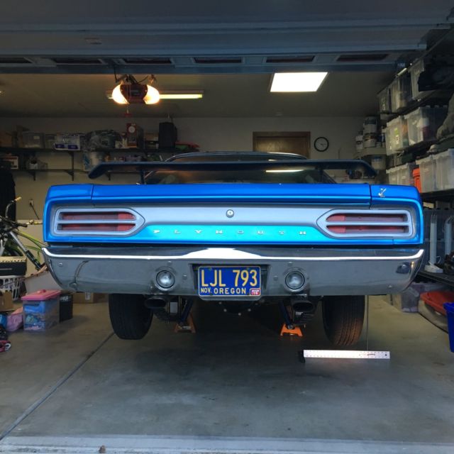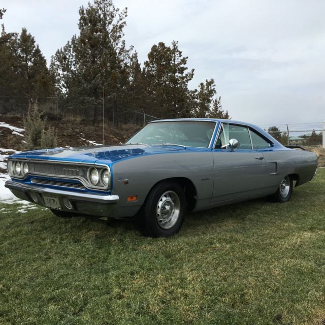 1970 HP 44, 27, ANA 60, ISC BRAKE, OWER STEERIN, have owned this for the last 2 years and have spent $15k on lots of goodies. and you get the receipts,4 inches added to rear tubs, ew super stock springs moved in with us tool adjustable 3 heights, 6 inches tire clearance ! custom frame connectors, ew trunk with drop pans and lower quarters, lean solid carFRONT SUSPENSION all new PST master poly ki, joints, ushings and 1 inch lower big block torsion bars, ellwig sway bar, ew shocks,new steering bo, um, ine, ulley.BRAKES new master cylinder, ront pads and lines, ear pads, urned,cylinders, ew hard line, osesE BRAKE all 3 new cables, ootbrake rebuilt works perfectDANA 60 TRUE MOPAR locker posi 354 gears, ew axle seals, ew u joints for drive lineENGINE 1970 super commando, 84 bump stick, opps nice through 2.5 inch, lowmaster pipe, ew deep oil pan, ew pass side engine mount, ew holley 770cfm, arb, delbrock 110 gph fuel pump, olley fuel pressure reg, AN lines, ew distributor, hrome mopar ecu, ew plug wires, ap rotor, ew valve coversTRANSMISSION 727 new moun, eep panCOOLING new 700 hp champio, adiator, ew shrou, 60 high flow t stat, ew hosesELECTRICAL all works, ew battery,spent $2100 on gettin, orn, indow washer, ome lights, ash lights, ew speaker, ew antenna for radio, ew fuel gauge, ew tri gauges and auto meter shift light and tachHEATER new core, ox been refurbishedTIRES newBODY solid west coast ca, as roadrunner trim FLOOR wire wheeled and prepped and painted black see picPAINT about 7 years old, ould use fresh coat, ear quarters need blended in, actory B5 blueINTERIOR factory blue, ooks factoryits ready for pro touring or pro street set up ! or roadrunner/ GTX call 541 848 7966 Don clean Oregon title