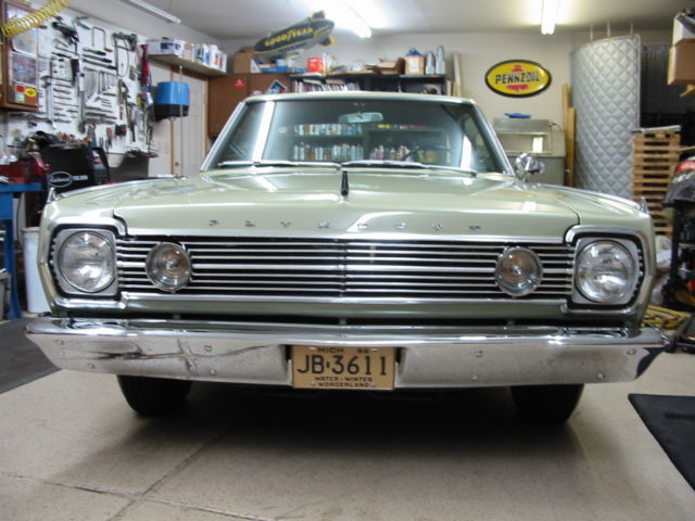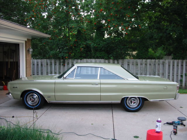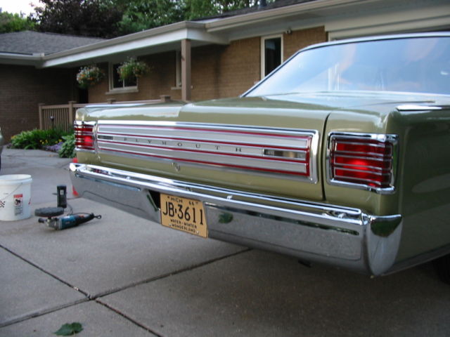 Built 3/25/66 Lynch Road Assembly, etroit, I VIN RP23-H61-240525 Shipped 4/17/66 to Secord Chrysler Plymouth, eriden, T I found this Satellite in eastern Pennsylvania with 86,000 miles on the odometer, 000 of which had been put on since 1970! It still had the original alternator, ater pump, tarter, arbs, istributor, aster cylinder, heel cylinders, hifter, nd of course engine, ransmission, nd differential. All of these items are still correct and original to the car. The car was purchased new at Secord Chrysler Plymouth in Meriden, onnecticut, y Richard and Kaye Patterson. Secord Chrysler Plymouth was famous for selling Hi Performance cars in the area in the 60's and early 70's. The Patterson's were a middle aged couple when they made the purchase and bought the car as their only form of transportation. The only modifications they made were to add "Richard" and "Kaye" on the chrome molding on the dash below the ignition key and glove box, espectively (see pictures). They also had the car undercoated before driving it home. They drove the car a lot and put a lot of miles on it the first six or seven years. Included are the notes that Richard kept showing tire changes and brake changes. Some of the key dates and mileages are: New Tires front and rear 39,300 miles 7/5/68 2 BFG on rear 42,972 miles 7/25/68 Pirellis on front 72,620 miles 6/9/70 Pirellis off front 80,247 miles 9/20/70 Remington's on front 80,247 miles 9/20/70 As you can see, hey drove the car! Nothing to this point had been replaced except the tires, rakes, il, nd filters. In 1969 the car was paid off. A copy of the title indicating when it was paid off is included. In the early 70's, he car began to run rough and it was suspected that the rear carburetor was bad. After several failed attempts to rebuild the carb by several local experts, he carb was removed, eft in the trunk, nd the car parked. The car was last inspected and registered in 1973, s evidenced by the inspection sticker that remained on the windshield until last year. The Patterson's later moved to the Harrisburg, ennsylvania area, here they became friends with Delores McAlister and her husband. The four became good friends, ut the Satellite was never used during their friendship because it had a "bad carb" . In 1999, rs. McAlister and her husband were looking for a retirement plan and were leary of the stock market and the future that it held. They read an article in the local paper about the 50 best automotive investments. Mrs. McAllister was very proud to show me the article where the 66 Satellite Hemi was #33. Mrs. McAlister and her husband bought the car from their aging friends for an undisclosed amount of money and they had at least part of their retirement plan! They also bought a 79 Trans Am, nother Mopar, nd an MG! Soon after purchasing the car, heir son began a light restoration project on the car. It included having the engine and transmission professionally rebuilt, nd having the car painted. When the engine was disassembled the real root of the issue was obvious; the cup plug had fallen out of the bottom of the intake manifold and crankcase gases were being sucked into the intake. That was quickly fixed with some skillful TIG welding. The car was once again road ready in the early 2000's. Mrs. McAlister and her husband drove it on nice days but put very few miles on it. Once again something began to make noise and caused the car to be parked. The Dana 60 differential was making a very loud growling noise! As a result, he car sat for 10+ years once again. When I bought the car from Mrs. McAlister, he told me the history of the car, nd gave me every bit of paperwork that she had for the car including the original window sticker, copy of the past titles, nd a copy of when the car was paid off in 1969 by Mr. and Mrs. Patterson. The original master cylinder was leaking, he differential sounded like a bag of broken glass, ut the engine ran well and the transmission was perfect. The restoration wasn't flawless, ut nothing was ruined or lost in the years of storage and minor use. The window sticker from the last required Pennsylvania inspection was still on the windshield. It was dated 1973. In a true testament to the car sitting for so long, he ring gear was solid rust on the half that was not submerged in the diff fluid. The main case bearings had spun, equiring some tricky machine work on a boring mill, nd some special shims to bring it back to its durable original condition. It sports the stock 3.54:1 ratio. I restored the car over the past year and have done it to the best of my knowledge exactly as it was delivered in 1966 to Mr. and Mrs. Patterson. I chose to leave the undercoating on the floorpans since it was in perfect shape and allows me to enjoy the car and use it and drive it without having to clean the underneath. The car is correct numbers matching down to every mechanical part. VON: 6132502201 (also stamped on rear side of core support in front of radiator) Engine Block Stamp Pad: BH 426 2 10 18 Built February 10th, 8 engine built that day Stamped on oil pan machined face: ??-7-66 Block Cast Numbers: 2468330-2 8 16 65 cast date Head Casting Dates: A 14 6 and A 19 6 cast dates LH Exh Manifold: 2780501 11 11 5 cast date RH Exh Manifold: 2780508 1 5 6 cast date Transmission A833 2 6 65 cast date on main case This car is 100% correct numbers matching alternator, tarter, ater pump, arbs, hifter, aster cylinder, iper motor, engine, rans, iff. The interior is 100% original restored except the carpeting and package tray which are new. All of the glass is untouched original to the car and has been buffed to restore and remove any light scratches. All of the aluminum and stainless trim has been restored to perfection. The floor pans still carry the original undercoating that was applied when it left the dealer. The floor pans are absolutely perfect in the car. The suspension and K Frame have been restored. The car runs and drives like the day it was new
