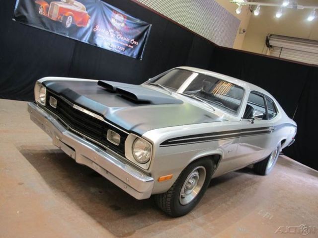 Just Toys Classic Cars is proud to present a really cool 1973 Plymouth Duster. This car is a lot of fun to drive and looks good as well. The silver paint shines up really nice. The fit and finish on the car is just like it should be. This is one of those cars that you need to relive your memories in. You either had one of these in high school if you were a mopar nut or you wanted one. Here is a chance to make that dream a reality. Again, ith most mopars the interior is pretty basic. This one here presents very well and is very clean. No frills or doo dads to try and wow you with here. Just a nice, asic, lack interior. As you will see in the pics, he car was born with A/C, ut no longer has it from the firewall forward when everything got rebuilt. Now, peaking of things getting rebuilt, his is what you have been waiting for. Under the hood of this baby sits a 340 4 barrel that is mated to an automatic transmission with a reverse manual valve body. Believe me when I tell you that this thing moves when you hit the loud pedal. You will have to restrain yourself from putting the pedal down on a regular basis. This car is that much fun to drive. There have only been about 1000 miles put on the new motor so it has had a good break in period and is ready to rock and roll. This car has never been on a dyno, ut all we can say is that she is fast. We offer classic car financing for anyone that would like to take advantage of the option. It allows you to get the car of your dreams and pay it off when you want to. They offer great rates and terms as well. We look forward to speaking with you soon, nd we look forward to making you the newest member of the Just Toys Classic Cars family. 1973 Plymouth Duster 340 4 Barrel Automatic W/ Reverse Manual Valve Body Silver Black Interior Front Disc Brakes Rear Drum Brakes Approx 1000 miles on rebuilt motor V-Duster S-Special 29- 2 Door Sports Hardtop H - 340 1-4BBL 8 Cylinder LA engine (High Performance) 3- 1973 B - Hamtramck, ichigan