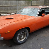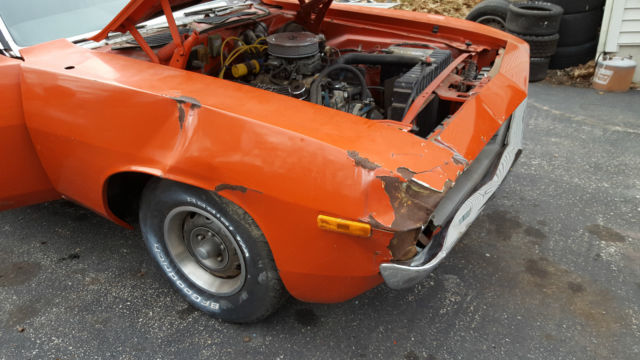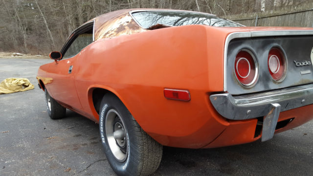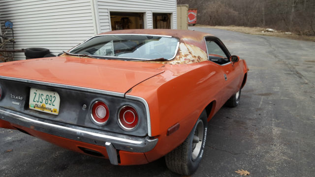 1972 MOPAR Plymouth 'Cuda 340 auto 8 3/4 rear it's a POSI Painted HEMI Orange with Black Interior and Black vinyl roof. Super solid 'Cuda. I have the Build Sheet (last photo) and original Title. THIS IS A matching numbered CUDA The 340 engine is stamped with the same VIN #as the car. Has the data tag showing this 'Cuda came with lots of options. Was Rally Red paint FE5 Black vinyl roof black painted hood and side stripe seen in last 2 ebay photos. Tinted glass, uel sport mirrors, ucket seats console slap stick 727 transmission (recently rebuilt 800 miles or so) This was Oct of 1971 built so it has the early style non 5mph bumpers. plus other stuff you Mopar guys can decode it photo of tag below. Please understand this 'Cuda is super solid underneath NO rust floors are good trunk pan is good the bent front fender is just damage to fender and bumper and lower valence NOT frame. Comes with the vinyl roof trim and a front fender and a used header panel and a new front lower panel to fix the damage. I will not restore car for you. Power steering and Front Disc brakes. Odo shows 36000 true mileage unkown. This Cuda Runs, rives, ut brakes stick a little and small gas leak when tank is filled. Needs a light restoration. Please view all the youtube vids ask questions or come and see for yourself videos at youtube links https://youtu.be/MKW3tmCpNX0 https://youtu.be/izeb6CANRm0 ....... https://youtu.be/qg8b1N1tgSw https://youtu.be/Iz0VBFzLXKc Interior .... https://youtu.be/c8DWlEZgcUE underside https://youtu.be/8evHGoizkO0 <><><><><><><><><><><><><><><><><><><><><><><><><><><><><><><><><><><><><><><><><><><><><><><><><><><><><><><><><><><><><><><><><><><><><>