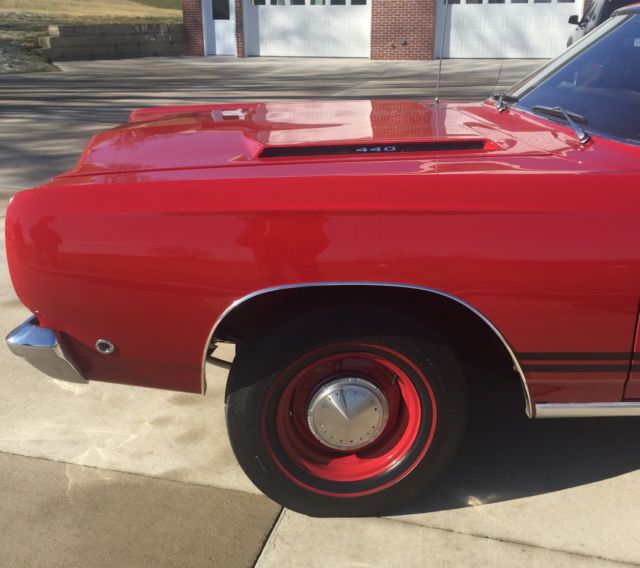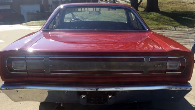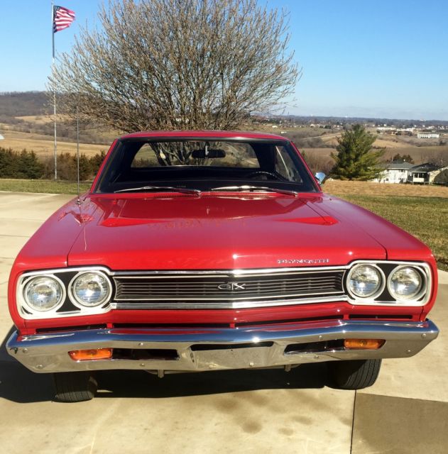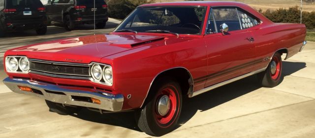 Plymouth Satellite GTX. Vermilion Red 1968 GTX. 440ci 4-speed. Beautiful older reservation, kept in climate controlled storage since completion. Believed to be 6400 original miles. This car drag raced in the late 60's and early 70's. The engine is not original to the car, it is period correct with a build date of 8/29/68. The transmission and rear end are original to the car. I know the previous two owners of the car and both of them had it in their collection and never drove it. I have had the pleasure of driving this machine and it runs and drives great. I have the original broadcast sheet, original invoice and dealer promotional pamphlet. options on the car are 4 speed manual, floor shift, 3.54:1 Dana 60 rear axle, Auto temp (heater) for dual exhaust cars, Transaudio AM radio, F70x14 Redline tires, 11" Heavy Duty drum brakes, Dual Horns, Cigar Lighter, Full interior carpeting, Glove box lock, Ashtray, Wide sill rocker moldings, Roff dripp rail moldings, Wheel lip bright moldings, Bucket seats, Steering wheel w/ partial horn ring, Heavy duty 70 amp battery, HEMI suspension. Please call Steve for any questions 5635990121