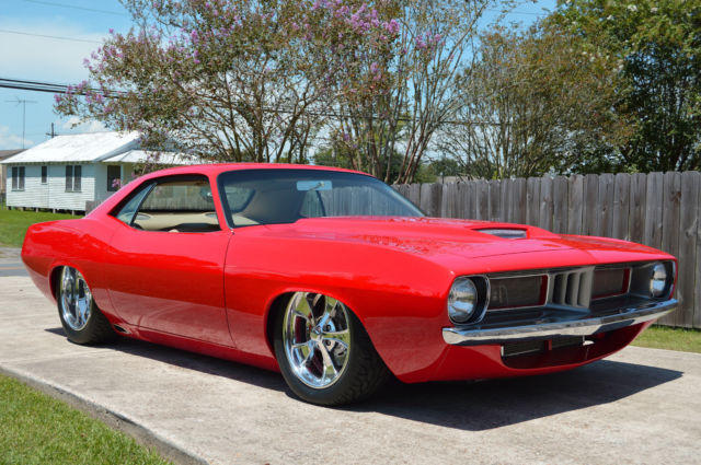 This Cuda has many body modifications and is truly one of a kind. Super smooth body is unlike anything you will ever see. Over $300,000 invested and it only has 127 miles on it. Engine: 6.1 Liter HEMI, Custom Old Style Valve Covers, Paxon Twin Supechargers (NOVI 1200’s), JBA Custom Headers, Flowmaster Series 40, 3” Mufflers, 545 RFE 5 Speed Automatic, B&M Shifter,F.A.S.T. Engine Management. Body: Steel Body, PPG BC/CC True Red, Custom Steel Ram Air Hood, Modified Bumpers, Custom LED Tail Lights, Custom Rear Panel with Viper Gas Lid, Extended Rocker Panels, Flush Fitted Glass Chassis: Custom Frame - Unibody Construction, Hand Fabricated Frame Rails, Currie Alum. Center, 9” Ford Style Rear End, Detroit True Track Posi Unit, Currie Axels, Front & Rear Wilwood Brakes, Magnum Force Front Suspension, 4 Link Set-up / All Stainless, 2” Drop Front Spindles, Air Ride Technologies RideProE2 Wheels & Tires: Front: 18 x 8 Billet Specialties - “Fuelies” Tires - 245/45/10 BFG T/A KDW Rear: 20 x 10 Billet Specialties - “Fuelies” Tires - 295/45/20 BFG T/A KDW Interior: By Lewallen Interiors Cleveland, TN. Full Taupe Leather Interior, Tan Carpet, Modified Pontiac G6 Dash, Classic Instruments, Vintage Air Heat/AC, Billet Specialties “Indy” Steering Wheel, Kenwood DVD with 7” LCD Screen, Memphis Audio Amp, & Speakers, Flaming River Stainless ColumnOn Jul-22-16 at 05:33:19 PDT, seller added the following information: This Cuda has many body modifications and is truly one of a kind. Super smooth body is unlike anything you will ever see. Over $300,000 invested and it only has 127 miles on it. Engine: 6.1 Liter HEMI, Custom Old Style Valve Covers, Paxon Twin Supechargers (NOVI 1200’s), JBA Custom Headers, Flowmaster Series 40, 3” Mufflers, 545 RFE 5 Speed Automatic, B&M Shifter, F.A.S.T. Engine Management. Body: Steel Body, PPG BC/CC True Red, Custom Steel Ram Air Hood, Modified Bumpers, Custom LED Tail Lights, Custom Rear Panel with Viper Gas Lid, Extended Rocker Panels, Flush Fitted Glass Chassis: Custom Frame - Unibody Construction, Hand Fabricated Frame Rails, Currie Alum. Center, 9” Ford Style Rear End, Detroit True Track Posi Unit, Currie Axels, Front & Rear Wilwood Brakes, Magnum Force Front Suspension, 4 Link Set-up / All Stainless, 2” Drop Front Spindles, Air Ride Technologies RideProE2 Wheels & Tires: Front: 18 x 8 Billet Specialties - “Fuelies” Tires - 245/45/10 BFG T/A KDW Rear: 20 x 10 Billet Specialties - “Fuelies” Tires - 295/45/20 BFG T/A KDW Interior: By Lewallen Interiors Cleveland, TN. Full Taupe Leather Interior, Tan Carpet, Modified Pontiac G6 Dash, Classic Instruments, Vintage Air Heat/AC, Billet Specialties “Indy” Steering Wheel, Kenwood DVD with 7” LCD Screen, Memphis Audio Amp, & Speakers, Flaming River Stainless Column Please contact Mike with any questions 504-417-4535