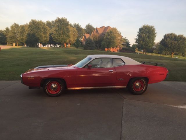 *** Relisting due to a bidder that hit "buy it now" and hasnt even contacted me to make payment arrangements. If you are choosing to bid please make sure that you actually have the cash to buy the car and you are ready to send the funds per the auction requirements. I do want to sell the car and it is for sale locally as well. 1971 PLYMOUTH GTX RED AND WHITE CAR WITH WHITE INTERIOR NUMBERS MATCH EVERYTHING EXCEPT FOR TRANSMISSION- CLEAN TITLE 2 FENDER TAG - I AM THE THIRD OWNER AND I HAVE FULLY RESTORED THE CAR- IT STILL NEEDS A FEW THINGS AND IS NOT A 100% SHOW CAR... IT CAN BE SEEN IN PERSON IN LEXINGTON KY IF YOU HAVE ANY QUESTIONS ASK- CHRIS CALL OR TEXT WITH QUESTIONS 859-621-5966 I will be glad to send you any pics needed to hep you make an informed decision about how car- it runs and drives great but I believe the car presents very well but I am not sure that I have outlined the cars condition in the best light... All of the fixes for the car are listed below but I am being very critical of the car in my outline. I have quite a bit in the car and it has tons of new parts that I have listed below-- runs and drives great- air grabber works The car itself is a great car but will need the following... 1) front bushings rebuilt- there is a little play in the front end now - I just 1150.00 getting all new drum brakes replaced and getting it aligned 2) there are two scratches in the paint which I will send you if you like on the drivers side where my daughters bike fell into it 3) there is a dent in trunk lid which was missed in the body paint and body work 4) it might need a rear bumper there are a few places that are in the bumper I am unhappy with 5) the air grabber hood is scratched and needs to be repainted 6) the new carpet is bunched up and needs to be stretched properly 7) the tuff wheel is a little worn 8)I kept the car 100% original but did add the rear wing and front chin strap and have left off the transverse stripe 9) a few of the gauges do not work but I wanted to be transparent I did buy the car from the second owner and I am the third owner of the car- I do not have the build sheet for the car but have checked everywhere for it - I did have one but rats early own turned it into dust. |