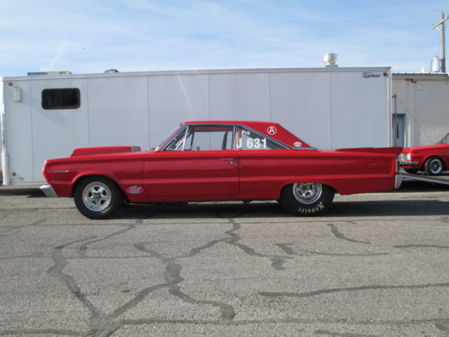 Your bidding on a 67 Plymouth race car That was built by Gene Lynch at Gateway race cars in 1986. It has been updated over the years to what you see here. I have raced it the last 9 years, and it has been a great car to race. It has taken me to the winners circle more times than I can remember. And it always scores high in the annual points standings, 2nd this year. All certifications are current as of march this year. I race super/pro bracket, and has a quickest 1/4 mile time of 9.92 @ 138 MPH. At an alt. 2850' above sea level. I mostly race at 5000' above sea level, 1/8 mile and average 6.60 @ 105 MPH. The engine is a 540 C.I.D. mopar mega block with 4 bolt mains, and a 4.5" bore. It has Indy CNC 325 heads on it. 1050 Pro Systems carb (could go way faster with a carb & cam change) I have a modest .620 lift roller cam and indy rockers, all freshened up 3 seasons ago (It will go 6 seasons betwen rings and bearings, even at that you will see very little wear. The transmission is an A&A Rick Allison built race trans that was freshened up this year. It has a Dynamic converter also rebuilt this year. Out back there is a Mark Williams built Dana 60 with 40 spline gun drilled axels, and there light weight spool. Mark Williams disk brakes rear and Willwood front. The cage is certified to 8.50 This car is very easy to get in and out of and goes straight as an arrow every time. There is a lot more potential in the motor, but I built it for Reliability, and that it has been. I shift it at 5900. It has a cheetah air shifter, but I always shift it my self. Could look at mopar trades from 1962 to 69s. Send me a message with questions, or if you want to see more photos. I have put a buy it now price for those not interested in the action thing, and don't want to let a proven winner get away. Thanks for looking at my car.