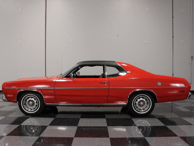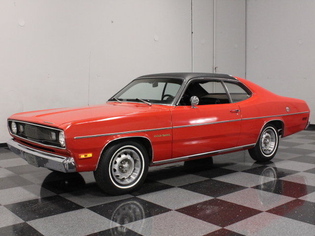Got a classic car to sell? We can Sell it! Call us Today! 1972 Plymouth Duster Stock #1889-ATL 1972 Plymouth Duster for Sale Charlotte Showroom 5400 West WT Harris Blvd Charlotte. NC 28269 Local/International: (704) 598-2130 Toll-Free: (866) 542-8392 Hours: Tues - Fri: 9AM - 6PM EST Sat: 9AM - 5PM EST Email: sales-cha@streetsideclassics. com Atlanta Showroom 213 Thornton Rd Lithia Springs. GA 30122 Local/International: (678) 279-1609 Toll-Free: (877) 367-1835 Hours: Tues - Fri: 9AM - 6PM EST Sat: 9AM - 5PM EST Email: sales-atl@streetsideclassics. com Dallas/Fort Worth Showroom 5400 Sandshell Dr Fort Worth. TX 76137 Local/International: (817) 764-8000 Toll-Free: (855) 877-2707 Hours: Tues - Fri: 9AM - 6PM CST Sat: 9AM - 5PM CST Email: sales-dfw@streetsideclassics. com VEHICLE SPECIFICATIONS ENGINE: 225 CI Slant 6 BODY STYLE : Coupe TRANSMISSION: 3 Speed Automatic EXTERIOR COLOR: ODOMETER READING: 1230 INTERIOR COLOR : VEHICLE FEATURES & OPTIONS Air Conditioning. AM Radio. Defrost. Heat. Power Brakes. Power Steering. Seatbelts. Vinyl Interior. Dealer Invoice. Maintenance Records. Owner's Manual. Title Documentation SELLER REMARKS Survivors are fun. with automotive archaeology being one of our favorite subjects. Looking at this one-owner 1972 Plymouth Duster. you'll be amazed by the preservation of the body and interior and with a thrifty slant-six under the hood. it's a practical. fun. and surprisingly energetic starter collectable. Did we mention it comes with the original dealer invoice and owners manual?The bright red paint has a lot of years on it. yet given the fact that this car has lived its entire life in warm. dry. sunny Georgia. it's probably not a surprise that it still looks great. There's a gloss to the finish that no paint technique can duplicate and only time can make a car this honest. Sure. it's got a few signs of use (don't we all?). but this is the proverbial little old lady special that was tucked away whenever the weather turned foul and only used lightly. The doors. hood. and deck lid are all where the factory workers put them back in 1972 and there's just an intangible feel to a car that has never been apart that no restoration could ever duplicate. A black vinyl half roof makes the sporty Duster look a bit more formal. and the minimalist trim suits its economy-minded mission quite well. This is one of Chrysler's more attractive designs of the period. smooth and substantial without looking bloated. and even the chrome bumpers fit snugly to the body to enhance its sleek profile. The black interior is surprisingly comfortable and like the rest of the car. in amazing condition. Bench seats make it feel roomy inside and the bright metal inserts on the seat backs gives it an upscale impression when you first open the door. There's a remarkably complete array of instruments for the driver. all nestled into a woodgrained instrument panel. and the three-spoke steering wheel will be familiar to any Mopar fan. There's an A/C system under the dash which is an unusual addition to the affordable Duster. but the rest appears to be no-frills motoring. including the original AM radio in the dash. Check in the trunk and you'll find a reproduction mat. but one glance at the insides of the quarter panels confirms that they're original and untouched. The 225 cubic inch slant-six was one of Chrysler's better ideas. Durable and smooth. it has plenty of torque to move the lightweight Duster around in an entertaining way. It's been recently freshened and shows off bright corporate blue paint surrounded by a very clean engine bay. An original air cleaner fits snugly against the power brake booster and A/C compressor. which is now full of R134a refrigerant. It's backed by a 3-speed automatic transmission and the original rear end with highway-friendly gears inside. so this is a car you can drive regularly without emptying your bank account. There's plenty of originality underneath. which isn't a bad thing in this case. because there's nothing hiding under a layer of undercoating. just the signs of age that all cars of this vintage show. A single exhaust system has that distinctive slant-six sound and the ride is comfortable. not cheap-feeling. Recent whitewall radials have been fitted to sporty Rallye wheels. which always look right on '70s Chryslers. It probably won't make you rich overnight. but if you've been looking for an inexpensive way to enjoy the greatest hobby on earth. then this 1-owner. documented. bright Duster might just be the one for you. Call today! 1972 Plymouth Duster for Sale 1972 Plymouth Duster for Sale Stock # 1889-ATL Charlotte Showroom 5400 West WT Harris Blvd Charlotte. NC 28269 Local/International: (704) 598-2130 Toll-Free: (866) 542-8392 Hours: Tues - Fri: 9AM - 6PM EST Sat: 9AM - 5PM EST Email: sales-cha@streetsideclassics. com Atlanta Showroom 213 Thornton Rd Lithia Springs. GA 30122 Local/International: (678) 279-1609 Toll-Free: (877) 367-1835 Hours: Tues - Fri: 9AM - 6PM EST Sat: 9AM - 5PM EST Email: sales-atl@streetsideclassics. com Dallas/Fort Worth Showroom 5400 Sandshell Dr Fort Worth. TX 76137 Local/International: (817) 764-8000 Toll-Free: (855) 877-2707 Hours: Tues - Fri: 9AM - 6PM CST Sat: 9AM - 5PM CST Email: sales-dfw@streetsideclassics. com TERMS OF SALE 1. Per the eBay User Agreement. by placing a bid you are entering into a legally binding contract and are committed to purchasing the vehicle described above. The details of this commitment are further outlined in the eBay User Agreement. 2. Vehicle may be sold by Streetside Classic Cars prior to the end of the auction. Streetside Classic Cars reserves the right to end its auctions early or to cancel bids solely at its discretion and shall not be held liable for any such cancellation. 3. The winning bidder is required to contact Streetside Classic Cars within 24 hours after the close of the auction to finalize the details of the transaction. 4. A $1. 00 non-refundable deposit is required within 48 hou