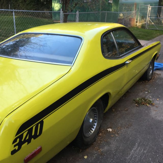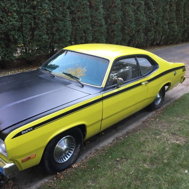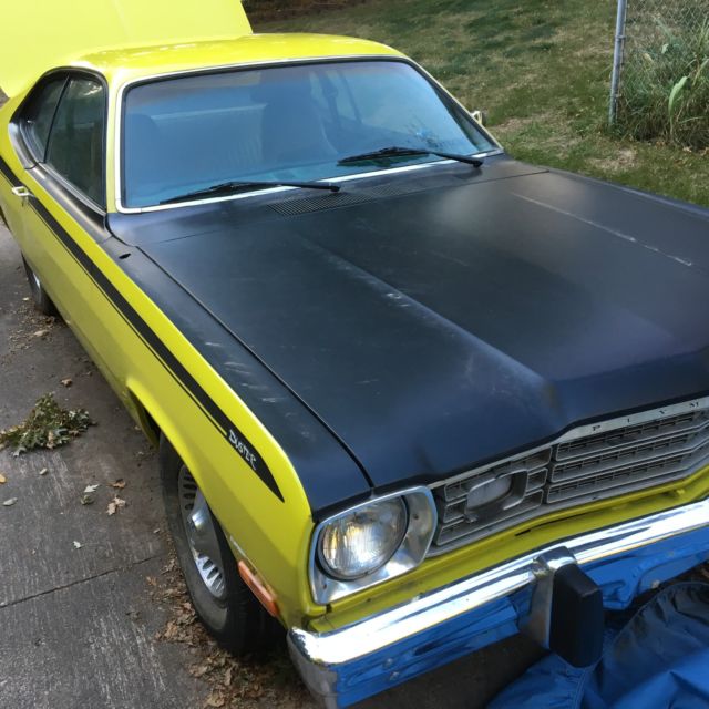 This 74 Plymouth Duster is a very solid, nice car, with no rust through anywhere that I can see; will make a very good candidate for engine upgrades. Look atthe pics at the wheel wells and trunk floor, the car was stored indoors for most of its life.Interior needs work as theseats are not bolted down. The slant 6 engine ran well, but it has been sitting for 6 months. Has new battery. Tires are roadworthy. Paint is inexcellent condition.I will get the mileage from it; forgot that detail. You can come and look at the carif you want, and I can arrange shipping to you. I am helping my neighbor sell this car and she is a new mother and needs the money. She was going to keep it, but, other things got in the way. So, bid accordingly, we are helping her out.