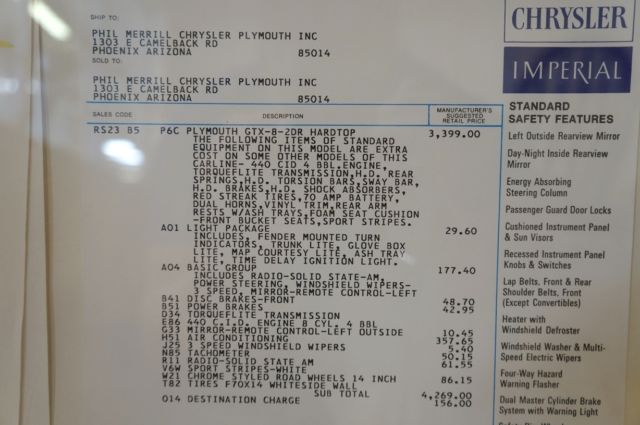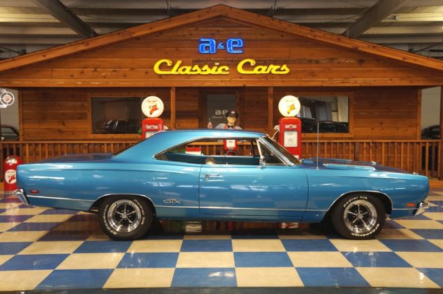 1969 Plymouth GTX 440 cui Super Commando engine 727 Torquelife Automatic transmission Painted factory Blue Fire(code B5) White vinyl bucket seat interior Power front disc brakes Power steering Factory Air Conditioning Dual exhaust with headers and chrome exhaust tips Autometer Phantom under-dash gauges VDO column tachometer Wood-grain finish dash /console Front / Rear lap belts JVC AM/FM/CD stereo Fender turn signals New 15" Magnum wheels with BFGoodrich Radial T/A's California restored car Comes with original owners manual Take the family to the car show with you Call (830) 629-4843 for more information on this or any of our classic inventory. Drive it off the showroom and anywhere you want to go ! | A & E Classic Cars brings you a collection of various vehicles, Classic, Collectibles, Exotic, Street Rods, Trucks, and More - all of a unique nature, but never the mundane. A & E Classic Cars is located in New Braunfels, Texas deep in the heart of the Texas Hill Country. Visit our showroom (aeclassiccars.com) for more choices & services in classic cars. If you would like to comment or suggest anything that will help us improve our service please do not hesitate to contact us at A & E Classic Cars. A & E Classic Cars makes every effort to represent the vehicle to the best of our knowledge and accuracy. Information is based on research, inspection, and speaking with the previous owner. We encourage buyers to make a detailed inspection or hire an independent 3rd party to verify the accuracy of the information provided prior to purchase. Vehicles are to be sold "As Is / Where Is" with no warranty expressed or implied. Email us with any questions you may have. |