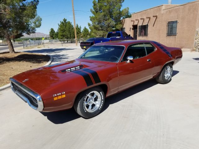 1971 PLYMOUTH ROADRUNNER. MATCHING NUMBER 383. COMPLETLY REBUILT, ONLY NON-STOCK ADDITIONS WERE INTAKE, CARB, AND ELECTRONIC IGNITION. HAVE ORIGINALS. 727 AUTO ON THE COLUMN, POWER STEERING. FACTORY NON POWER DISC BRAKES. TRANSMISSION NOT MATCHING NUMBER. NEW WIRING FRONT TO BACK, NEW EXHAUST WITH FACTORY TIPS AND FLOWMASTERS. NEW WHEELS AND TIRES. PAINT GOO, ORIGINAL COLOR, NOT PERFECT, HAS SOME BLEMISHES IF YOU LOOK HARD ENOUGH. NEW MEXICO CAR ITS WHOLE LIFE. EXCELLENT FLOORS AND TRUNK, MINIMAL BODY WORK DONE TO QUARTERS TO STRAIGTEN AND FIX MINOR RUST. ALL NEW HINGES. AFTERMARKET RETRO STEREO, DASH NOT CUT UP. NEEDS HEATER CONTROLS AND CABLES INSTALLED. WIPERS AND TEMP GAUGE IN-OP. RUNS, DRIVES AND STOPS EXCELLENT.HAVE MANY MORE PICTURES, THIS IS ALL I COULD UPLOAD FOR NOW. TITLED IN MY NAME, I'M THE SECOND OWNER. CALL OR TEXT JOHN @575-528-8786. I'M SURE THERES A LOT I LEFT OUT, I HAVE TONS OF RECIEPTS FOR PARTS AND WORK IVE DONE OVER THE YEARS. CASH ONLY. MUST BE PAID FOR IN 7 DAYS, CAN BE STORED INSIDE UP TO 30 DAYS AFTER PAID IN FULL. NO TRADES.On Dec-08-16 at 09:52:39 PST, seller added the following information: WITHIN THE LAST YEAR, THE FOLLOWING IS ALSO NEW...STEERING WHEEL, HEADLINER, DOOR PANELS, DASH PAD, AND ALL SEALS AROUND DOORS AND TRUNK, AND REAR BUMPER. IF CAR SELLS FOR OVER $20K, I'LL ALSO GIVE THE NEW OWNER SEVERAL EXTRA, SPARE PARTS I'VE ACCUMULATED OVER THE YEARS FOR THIS CAR. TRUNK PAN AND FLOORS ARE ROCK SOLID, NO RUST, NO PATCHES EVER. PERFECT SUBFRAME, NOT EVEN PITTED.