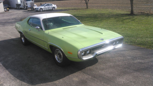 ok heres a super clean satellite for you guys absolutely no rust car from south carolina all its life 2 owner car original jack and wheel wrench single exhaust everything works like it should fasten seat belt lite and buzzer included pump the throttle twice and hit the key starts instantly the ralley wheels are not correct but im in the process of get the rite ones so it will have the correct ralley wheels when purchased i bought the car with the intentions of cloning it to a road runner but i cant bring myself to do it it just to nice these survivor cars are bring big money untouched so here it is the car has had some paint work done quite awhile ago its thin in spots but for the most part untouched no damage to the body any where but there are some small dings and scratches the car has all new bushings in the front end and could use an alignment it has manual brakes at the moment but the 2nd owner removed the booster and made them manual he did keep the original booster and it comes with the car he also installed a factory ralley dash with tack everything works in it i have an original dash that can be traded if you are not interested in the ralley dash has original carpet and seats the dash pad needs covered but the entire rest of the interior is very clean and original the door panels are not chaulky or brittle the carpet has great color as do the seats i believe the spare tire is correct and original this is the first survivor quality car ive owned so im not sure i did notice the engine displacement decal behind the fender tag is incorrect as it list the engine as being a 440 instead of a 318 also the radiator support decal appears to have been changed it appears that the hood insulation is original as is the trunk mat which both are in very good condition with no tears the upper and lower grilles are perfect the doors close effortlessly and windows wind up and down with no issues and original am/fm radio that works perfectly. really really nice clean original plymouth my number if you have any questions or need more pictures by text is 724 944 5646 i encourage everyone interested to come see the car but my credibility is impeccable check my rating so if you cant make it here you can buy knowing your not getting something that wasnt described accurately thanks for looking [ please i forgot to mention it was told to me when i bought the car that it has about 72k miles on it NOT the 28 that is on the rally dash speedo] i also have the build sheet the original radiator antifreeze tag and factory starting procedure tag the orginal owners manual and emissions controls manual in its factory plastic case along with factory plymouth satellite sales brochure dated 8-1-71 i reserve the rite to end the auction early car is for sale locally as of today dont let this one go by!!!! thanks steve |
