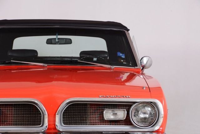 | Head turning convertible. Clean North Carolina car. Rock solid original floors. Has a really impressive paint job. It was completely repainted including the engine bay under the hood and the jambs. Has a very smooth glossy Hemi orange finish. The doors shut real nice. Bumpers have been replated windshield and gasket have been replaced weather strips are new. Has some stand out 18 inch chrome wheels with performance tires. Original wheels also included. The interior has been reupholstered. Has excellent door panels carpet and a very nice dash area. Has the factory tachometer and aftermarket sunpro gauges under the dash. Convertible top has been replaced recently. Motor has been gone through. Performance cam Edelbrock intake Holley carb and a set of headers. Has a fat exhaust with Flowmaster mufflers that sounds great. Transmission has been rebuilt. Has a polished aluminum radiator to keep it cool. The car comes with a folder stuffed with maintenance receipts. It's a sharp Mopar convertible that you rarely see. Clean strong runner ready to enjoy. Bucket seats 18" wheels Tachometer Sunpro gauges Stereo Embroidered floormats 4 barrel Dual exhaust Power top Remote mirror |