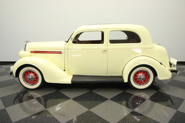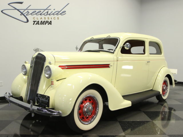 We know why you're looking at this 1936 Plymouth 2-Door Touring Sedan. You want a great classic that reminds you of a bygone era with every inch. But you also want a car that can be comfortably driven like a good classic should. You want it all, and that's exactly why we caught you looking at this one.The pointed nose with torpedo-like floating headlights makes an attractive first impression, and the squared-off trunk makes it instantly recognizable from behind as a Chrysler product. The body is not a fiberglass reproduction, but instead American steel that has been cherished for over 80 years. The paint is a match to the correct yellow from Chrysler's paint shop, but the kind of gloss and shine tells you there was a far more recent investment in quality modern paint. And to make this yellow really pop on the show field, there are red accents on places like the headlight supports, streaking across the hood, running along the entire profile, and on those bold factory wheels with iconic whitewalls and Plymouth hubcaps. You'll love the stellar overall presentation from the tall waterfall grille, to the re-chromed bumpers, to the full sail hood ornament, to the doors that still shut with authority. And you're not the only one that appreciates all this quality, because info on past awards won by this Plymouth come with the sale.This is a newer interior, but the upholstery shop took their time to get the right materials and overall presentation correct. That means the restored light brown fabric does a fantastic job of giving this spacious sedan a comfortable and complete feeling without upgrading the Plymouth's everyman theme. You get a great classic three-spoke steering wheel with Plymouth center cap, and the floor-mounted shift is a great place to rest your right hand. You'll love watching the central mounted speedometer do its dance on every roadtrip. Plus, the correct Philco AM radio and heater controls that are on display truly make this a time machine of an interior.Under the hood, the 201 cubic-inch inline-six has a fantastically honest presentation. Torquey and smooth, it moves the tidy sedan quite easily, and it has proven itself to be as reliable as an anvil. Looking highly original with its oil bath air cleaner, this engine has an appearance of honesty that fits with its legacy. The three-speed manual transmission makes sure you get the most out of the flathead motor. And the secret to this Plymouth is that it had its own guardian angel. Not only did the consignor make sure that the restoration work gave this a fantastic presentation inside and out, but also he says the motor was rebuilt around 9,000 miles ago. That kind of care means this classic fires up easily, shifts smoothly, and rides as smooth as a Chrysler/Plymouth should.There is a great history on this car, right down to the original 1936 registration docs. Time capsule classic like this don't come around too often, so don't miss out. Call today!!!