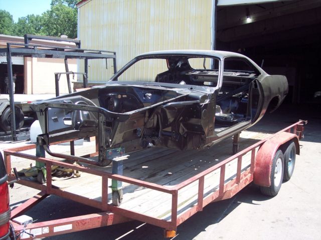 1970 PLYMOUTH CUDA. N.O.M. 440 ENGINE AND TRANSMISSION. I DO HAVE THE OPTIONS TAG AND A CLEAN WISCONSIN TITLE. GOOD GRILLE AND HEAD LAMP BEZELS. THE BODY SHELL HAS BEEN REWORKED WITH NEW FRONT INNER FENDERS, NEW ROOF SKIN, FLOOR PANS AND TRUNK PAN PLUS LT AND RT TRUNK EXTENSIONS. NEW TRUNK LID. REAR 1/4 PANELS, ALL WHEEL HOUSES WERE REPLACED ALSO. ALL REPLACEMENT PANELS ARE MANUFACTURED BY AMD. FACTORY REAR FRAME RAILS REPLACED. BODY SHELL WAS PROFESSIONALLY ACID DIPPED AND E-COATED AFTER WELDED. BUYER HAS THE OPTION OF WHAT DOORS THEY WANT. I HAVE DIPPED AND E-COATED DOORS OR GOOD RUST FREE DOORS WITH ORIGINAL PAINT. HOOD IS THE ORIGINAL. NEW REAR DUAL CUT OUT VALANCE. AMD. I HAVE ONLY ONE GOOD REPAIRABLE FENDER, ACID DIPPED AND E-COATED. ONLY ALTERATION FROM STOCK IS THE RIGHT SIDE FIREWALL HAS BEEN CHANGED TO A/C STYLE, ALONG WITH THE FRONT CORE SUPPORT SIDES TO ADAPT A 26 INCH RADIATOR . ORIGINAL WAS A 22 INCH. I HAVE A GOOD 440 BLOCK 7-24-70 OUT OF A C BODY CAR. I HAVE MOST OF THE PARTS TO A COMPLETE ENGINE NO CARB OR AIR CLEANER. I HAVE SEATS, DASH COMPONENTS, AND 95% COMPLETE PARTS. SUSPENSION ALSO COMPLETE. WAS A FRONT DRUM. POWER STEERING POWER BRAKES,CENTER CONSOLE AUTOMATIC. WITH A VINYL TOP. FINNED ROCKER MOLDINGS. F8 EXTERIOR. I HAVE EXTRA PARTS THAT DID NOT COME ON THIS CAR BUT WILL SELL AT EXTRA COST IF BUYER WISHES TO OWN. PLEASE ASK QUESTIONS IF UNSURE ABOUT ANYTHING. 815 520 3227 8 AM TO 10PM CENTRAL TIME. PLEASE NO TEXTS ASK FOR RICH RTS RESTORATIONS.