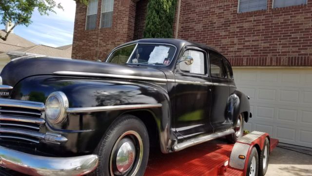 | Selling 1947 Plymouth special deluxe sedan. Runs, drives, will need brake work. Stops but rear wheel cylinder leaks. Body and paint looks good, but will need inner and outer rocker repair. Decent interior. Engine starts and runs well. Car was dry garage stored for 10 years. I bought it last year, changed fluids, cleaned gas tank. Complete tune up and new battery. With a little brake work, car would be an every day driver. Moving, selling 3 cars. Thanks |