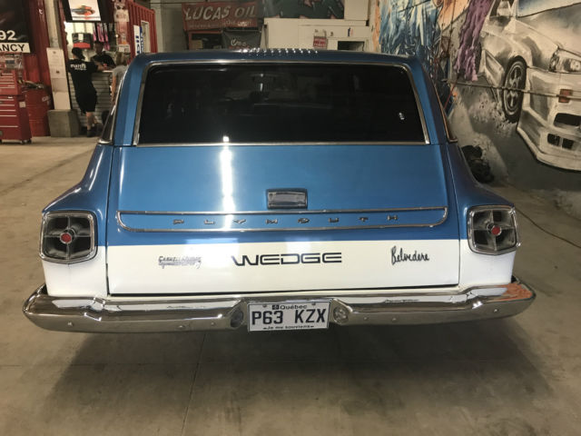 1963 plymouth belvedere wagon with built 440 cubic inch motor 1970 440 block oversized 30 overeagle crank stock strokeeagle h beam rodswiseco forged pistons 10.8 to 1 compressionspeed pro ringsisky mecanical roller cam 602 lift and 260 of duration at 50isky mecanical roller liftersmilodon oil panaluminium edelbrock victor junior heads b1 style 2.20" intake valve 1.81" exhaust flows 322 at 600 lift intake and 219 on the exhaustharland sharb roller rockers 1.6 ratioedelbrock valve springsintake edelbrock victor #2954 3500 to 7500rpmholley competition 750cfm double pumpercomp cam pushrodsstarter pro master #1337alternator pro serieshustler hedman headers #78036msd 6al boxtaylor 10.4mm wirestiming gear drive milodonbronze gear comp cam #424msd blaster coilaluminium water pumpaluminium water pump housing march pro series puleys #10310 cooling mecanical 6 blade fanaluminium pro series radiator transmission 727 turbo action full manual reverse valve bodytorque turbo promotive 35000 rpmb&m quicksilver shifter exhaust 3 inch pipesflowmaster muffler differential 8 3/4 diff with 3.55 gears and posi unit body paint was done in 1989 and still in very good conditionb5 blue and whitejust one little spot of rust on the front quarter pannel but thats the only spotboth bumpers where rechromedtinted windows interior 2 seats where completly redone with new coverscarpet is brand newcustom floor mats are brand newsteering wheel in great shapedoor pannels are in great shape as well wheels first set weld draglite front 15x4 with m/t front runner and 15x8 in the back wiht m/t drag radialsecond set stock wheels color matched to car and dog dish hub caps with bf goodrich tires overall this car needs nothing to enjoye everything works lights flashers wipers radio put the key in and enjoy performance motor dynoed at 521 hp at 6000 rpm and 511 foot pounds of torqueseight miles 7.40 ran at autodrome st-eustachequarter mile 11.70 ran at napierville dragway i can arrange shipping anywhere in the usa for extra feei reserve the right to end auction at anytime because car is for sale localy |