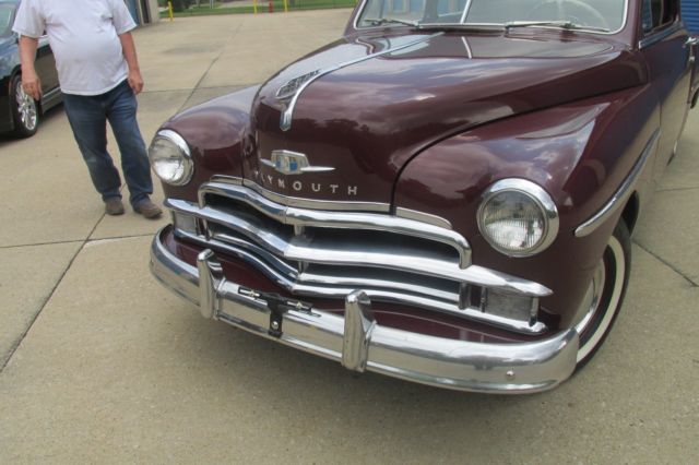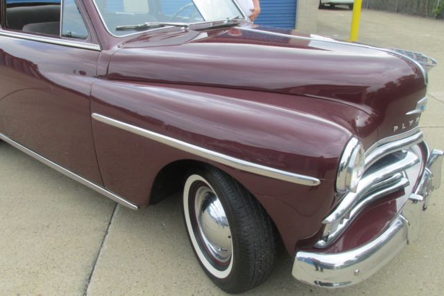 1950 Plymouth 2-door, this is a time capsule,I cannot find any rust on this car, look at the pictures the body is rock solid the inner and outer rocker panels are solid inner and outer fenders rock solid. recent paint job,nice chrome, new interior including headliner door panels wind lace and .carpeting, new complete exhaust system, whitewall radial tires are like new, the car appears to be 100% original, at some point someone added aftermarket turn signals. if you need any other pictures let me know and I will forward them to You. the only isues are the drivers door latch should be replaced ( sticks a little ) front brakes need a little adjusting ( pulls to the left on heavy braking ) and the carbuator should be rebuilt. the factory carboard duct work from the heater box to the firdwall needs to be replaced. can be purchased on e-bay every day. if you have any questions pleade call Terry Kelley at 216-554-0568. you will not be disappointed with the car, bid with confidence !!