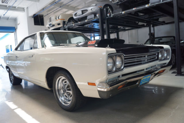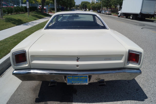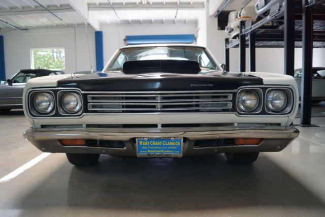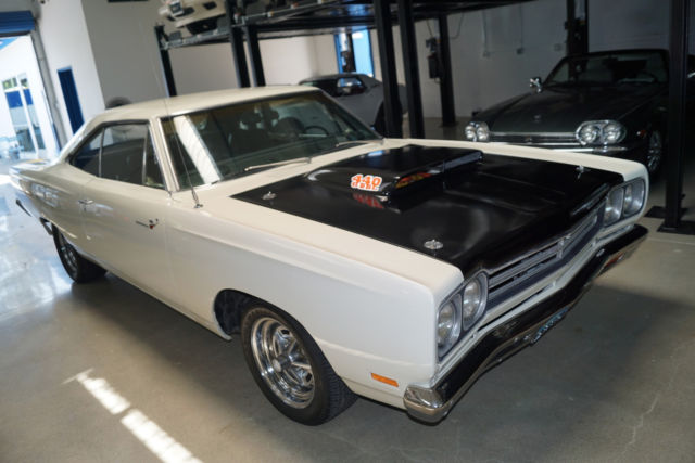 West Coast Classics are proud to present a great example of this rare and nicely optioned and unrestored 1969 Plymouth Roadrunner with a big block 'Raised Block' 440 6 Pack V8 engine matched to a 'Torqueflite' automatic transmission with a lift off 'Flat Black' removable hood. The car is rust free and a worthy candidate for the muscle car enthusiast to restore fully or simply a great daily driving example for any classic muscle car enthusiast! This particular car was born with a 383 V...8 engine but now boasts a 440 6 Pack RB big block engine with the correct date correct 2536430 casting number from 1966-72. The 440 RB block was introduced to power the big and heavy Chrysler, Dodge and Plymouth intermediates and full size cars in 1966 and the ultimate incarnation was the 1969 1/2 440 Six Pack (Dodge) and 440 Six Barrel (Plymouth). The engine was built to bridge the gap between the 375HP 440 cid V8 and the street Hemi. It was outfitted with an aluminum intake manifold that used three two-barrel Holley carburetors. The result was 390HP. The 1970-71 versions of the engine used a cast iron version of the intake manifold as a cost savings measure and the engine was also fitted with stronger connecting rods. Both of these 440 cid engines proved themselves to be capable preforming street engines. This particular car is very straight with no signs of any major accidents and the floor boards, drip rails, rocker panels and trunk are solid and rust free. The car looks very impressive in it's original 'Alpine White' factory color paint with a black interior and seats. It has a striking 'Flat Black' fiberglass lift off hood with scoop and 4 hood pop up springs and NASCAR hood pins and it's original 'Roadrunner' horn! The big block engine is extremely strong and powerful and this particular car drives like a dream, the transmission shifts smooth and the engine temperature always runs cool. Although obviously not a concourse example, this remains a very rare and highly desirable and collectible example of one of the outstanding muscle cars of the sixties, which has high repute amongst collectors for both it's beautiful lines and simplicity and high performance. For 1968, the Plymouth lineup offered the high performance Roadrunner packed with a standard 383/335 HP engine with an optional 4 speed transmission, heavy duty suspension, GTX like hood bulges, a 'taxicab' basic interior, little cartoon bird decals on the doors and the unique 'Beep-Beep' Roadrunner horn! Combined with low weight, the 6-passenger Road Runner could run the 1/4 mile in 13.5 seconds at 105 mph (169 km/h). It would prove to be one of the best engines of the muscle car era, and the Road Runner one of the best platforms to utilize it. The Roadrunner was not fragile. Unlike some sports cars (such as the Corvette), it was built for serious street work, the Roadrunner was reportedly a favorite of moonshiners, faster than almost any police car and tough enough to take practically any bump, with good ground clearance to boot. Everything essential to performance and handling was beefed-up and improved; everything nonessential was left out. The interior was spartan, lacking even carpets in early models, and few options were available. A floor-mounted shifter featured only a rubber boot and no console so that a bench seat could be used. An "Air Grabber" option consisted of an air duct assembly bolted to the underside of the hood that connected to twin rectangular upward-facing scoops in the hood. When the hood was closed, a rubber seal fitted over a large oval unsilenced air cleaner assembly that ducted air directly into the engine. The scoops in the hood could be opened and closed via a lever under the dashboard. Continued only until 1970 and a 'Milestone classic car status' vehicle today! With the four speed shifter, the acceleration is unreal! Because it was a bare-bones muscle car it's weight was kept as low as possible for an even better power to weight ratio than any of it's competitors. Plymouth needed a muscle car to really stand out from it's competition and with 335HP this car really lived up to it's name and could beat almost any other muscle car on the street, with the 440 6 Pack or Hemi it was unbeatable! Dodge missed out on these low priced muscle cars at the beginning of the 1968 season but soon added the Super bee to counterpart the Roadrunner. The Roadrunner and Super Bee's performance quickly silenced any laughter coming from those who drove an SS, GTO or GTA, names that began to sound dated. Lean and mean, meant for boulevard cruising or an occasional street race, these vehicles offered the Mopar buyer the ultimate bang for the buck and the proof was that the Roadrunner was Motor Trend's Car of the year in 1969! One of the standout muscle cars of the sixties, rare today, a neat original Roadrunner is highly prized by collectors and Mopar enthusiasts! In summary, this 1969 Plymouth Roadrunner with a big block 440 6 Pack engine is one great daily driver, ready to drive and enjoy today and a sure-fire investment that's sure to appreciate over the years for any classic American sixties muscle car enthusiast or a perfect restoration project for the Mopar enthusiast! |