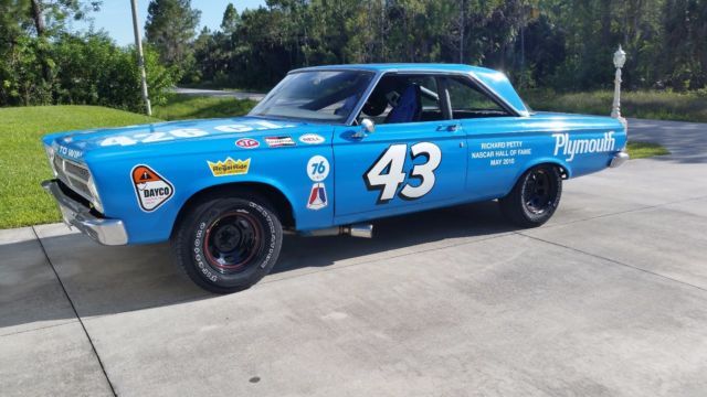 PRICE REDUCED. Thanks for looking. This is a 1965 replication of the Riverdale #43 Richard Petty stock car. Everything on this car is in good condition. The car is set up like a 1965 race car. racing seats, roll bar, toggle switch for ignition and push button start, new wheels and tires, fuel cell in trunk. This car is perfect for car shows or parades. A real head turner, thumbs up where ever you go. A MUST if you are a NASCAR especially a Petty fan. The car was built to look like a real NASCAR without all the expense of owing, driving a real NASCAR. It will run all day, plenty of power, on regular gas with the rebuilt slant 6 engine and auto transmission, never overheats. If you want a NASCAR for under $100,000 this is for you.239 six seven 1-23 seven eight. Call text or email for more information. Interesting trades. No bikes or boats. This car is street legal. Licensed and insured at this time. VERY fun to drive. MUST SEE youtube walk around available. please call or email for link. ebay will not allow a clickable link. OR: search youtube "1965 petty plymouth, My 82 vette" FYI: this car with the 426 Hemi was band from NASCAR in 1965. To fast, not fair for other auto manufactures . ;-) |