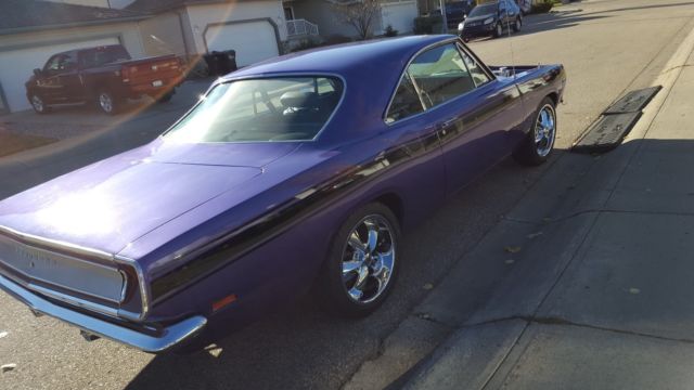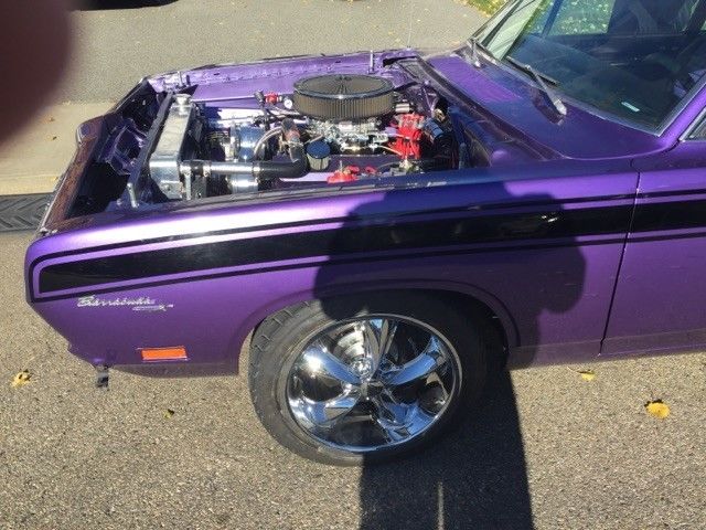 | 1969 Barracuda. Best of everything. All drivetrain and suspension brand new. ( o miles) 408-600 HP. 727, Strange dana 60. Riley Motorsports k member and power rack, Magnum Force 4 link. Double adjustable coil overs on all four corners, Wilwood all corners. march, B&M,. Leather, Automoter. Foose wheels with Mickey Thompsons. 2500 watt stereo. Original hood included. |