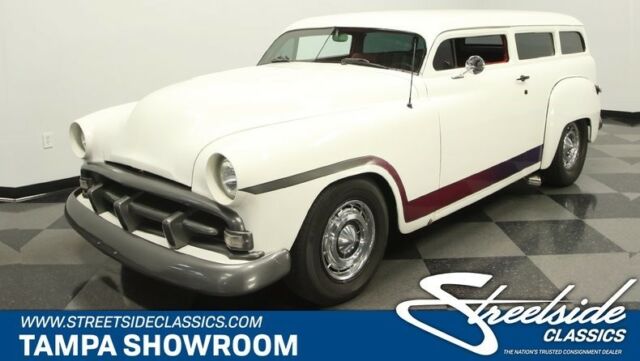 Distinct, custom, and an all-around attention grabbing presence that's what attracted you to this 1951 Plymouth Custom 2-Door Wagon. But when you check out the powerful V8 and thoughtful details, you'll soon realize this is a cool and coordinated classic that has everything you could ever want for quite a nice price. This one started life as a Concord Savoy Suburban, but this classic is a long way from its stock presentation days. The chopped profile instantly lets everyone know they're in for something special, but there's also a ton more work that goes into creating an award-worthy custom like the one you see here. There was a small fortune spent on the bodywork to make it ultra-smooth. And now it also includes custom elements like the frenched headlights, expertly deleted trim, and the louvered hood. The custom white paint has a great metallic element that really pops in the sunshine. And the stripe on each side is a real attention grabber as it shifts color on its way down the body. Plus, have you noticed how the metallic grey in the stripe matches the custom painted grille? It's just another reminder of how thoughtful this total custom package is. You're instantly attracted to the deep red interior as it almost radiated from within the white exterior. This 1950s machine has been given a full custom setup. That's why you have a nice wide driver's seat with a fold-down arm rest for individual comfort. Not only does the pattern on the seats match the door panels, but with a coordinating red on the dash and headliner, too, your instantly reminded of how much thought when into creating this custom Plymouth. A car like this has plenty of room to share with family and friends, and the AM/FM/CD stereo is there to keep them entertained. There's even the space to carry plenty of tailgating supplies. But you don't have to be social in this custom if you don't want to. After all, once you slip behind the Grant GT sports steering wheel and hear the growl of the exhaust, nothing else matters. We love to see proper Mopar power in a classic Mopar machine. The 340 cubic-inch motor is already a strong powerhouse, and this one has been upgraded with a Holley four-barrel carburetor, Edelbrock intake, finned Edelbrock valve covers, and a large air topper with Mr. Horsepower boldly reminding you this is a fine V8. Plus, there's an aluminum radiator w/electric fan to keep it running cool. This fires up nicely with a sweet rumble that exits just in front of the rear wheels. The Torqueflite A727 three-speed automatic transmission is the perfect mix of stout components and in an effortless package. Plus, with an upgraded front suspension, power steering, and power brakes, this custom Plymouth knows how to cruise with ease. You'd expect to pay a ton more for something this unique and finished to such a high standard. So hurry up and grab this custom Plymouth before someone else realizes how great a deal this is. Call today!!!