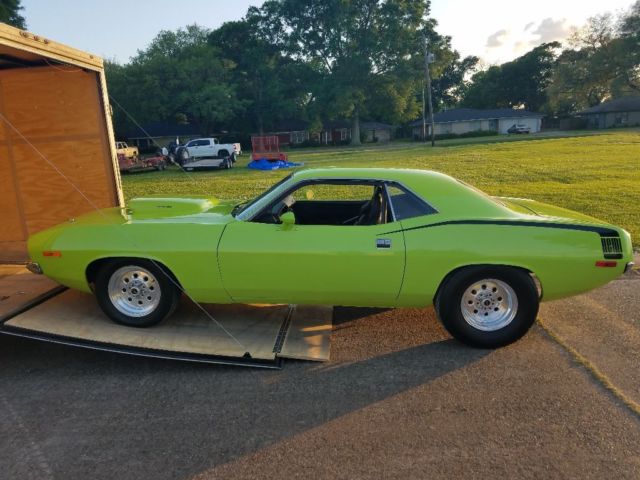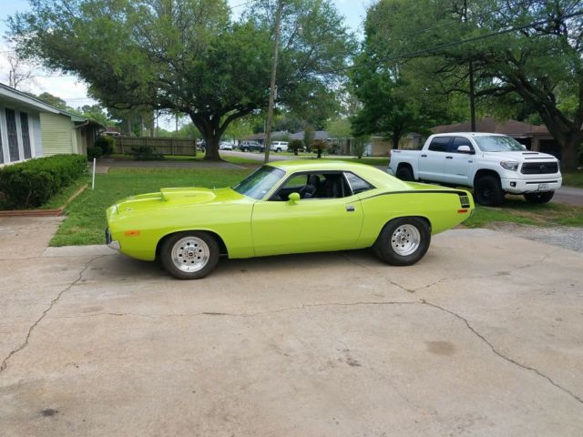| You wont find a nicer cuda 440 (520 stroker)727 8 3/4 410 gears wildwood brakes all 4-corners QA1 upper and lower in front QA1 coil overs in back reinforced rearend sub-frame connectors... ladder bars. Micky Thompson et streets. Car has ac,power steering/power brakes. Stereo system fitech fuel injection clear title in hand. This is one serious piece of classic muscle!! Cruising this car anywhere and every head turns.... |