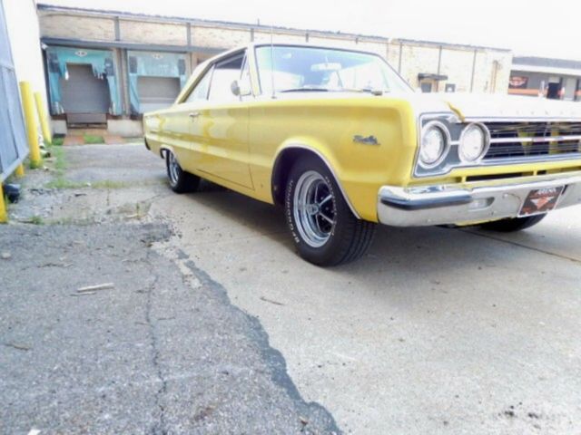 THIS IS A VERY NICE SOLID 1967 PLYMOUTH SATELLITE...PAINT IS A COMPETITION YELLOW....GOOD STREET QUALITY...VERY FEW BLEMS...BRIGHTWORK IS GOOD...CHROME SPORT WHEELS ARE VERY GOOD MOUNTED ON GOODRICH BIGS AND LITTLES....23560R15 REAR.....21565R15 FRONT.....TRUNK FLOORS AND PASSENGER FLOORS ARE SOLID...UNDERCARRIAGE IS CLEAN ..BUT NOT SHOW DETAILED.....INTERIOR IS CORRECT REPLACEMENT...SEAT COVERS, DOOR PANELS AND HEADLINER....CONSOLE AND DASH ARE SHOW QUALITY...SUNPRO GAUGES HAVE BEEN ADDED TO KEEP TRACK OF BUSINESS UNDERHOOD............ A FRESH BUILT 440 RUNS WELL....POWER STEERING AND POWER FRONT DISC BRAKES MAKE IT A GREAT DRIVER....ENGINE COMPARTMENT IS DETAILED......GREAT DRIVER .....3:55 GEARS...FOR CRUISING At our dealership we work very hard to accurately describe our vehicles through text descriptions and elaborate photos. When you purchase a pre-owned vehicle it is not a new vehicle. Any used vehicle can have normal wear and blemishes. Before placing a bid please read the descriptions thoroughly and view all pictures.