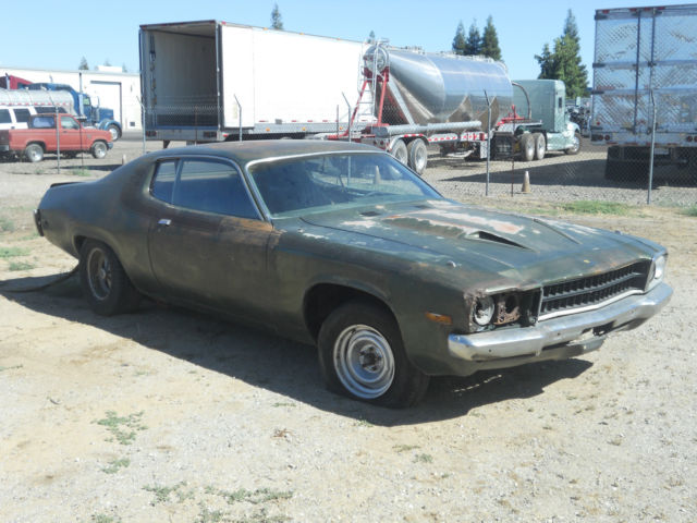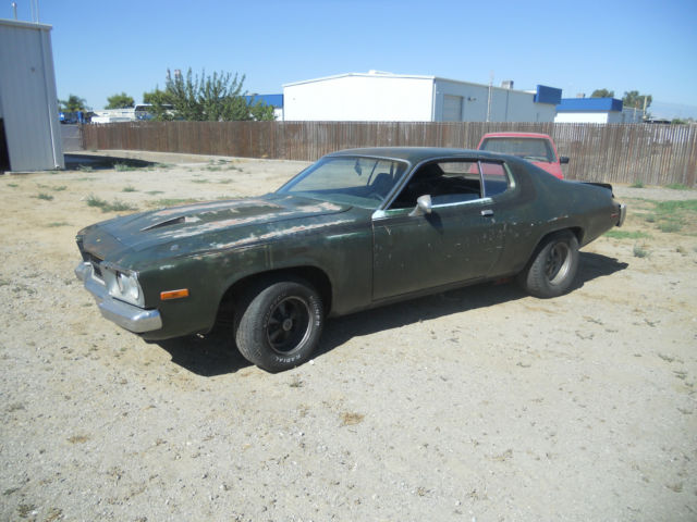 THIS AUCTION IS FOR A 1973 PLYMOUTH ROADRUNNER. THE CAR IS A FACTORY 4 SPEED CAR. AND HAS A 340 ENGINE WITH THE 360 HEADS. FLOORS ARE REALLY SOLID IN THIS CAR. NO RUST!! INTERIOR IS THERE BUT WILL NEED REDONE. CARPET WAS REMOVED BUT THE FRONT AND REAR SEATS ARE THERE. THE HURST SHIFTER IS THERE AND THE FACTORY TACH IS THERE. ENGINE WAS STARTED ABOUT THREE MONTHS AGO. A FRIEND CAME OVER AND SET UP THE ELECTRONICS FOR THE MOPAR IGNITION AND THE CAR FIRED UP. THE CAR RAN FOR A FEW MINUTES AND THE TRANSMISSION WENT INTO ALL REARS INCLUDING REVERSE. WE DIDN'T DRIVE IT ANYWHERE BECAUSE IT HAS NO BRAKES. THEY WILL HAVE TO BE GONE THROUGH ALSO. THE COIL AND CARB WAS REMOVED AND USED ON ANOTHER CAR SO THIS CAR IS MISSING THE CARB AND COIL. ENGINE BAY IS CLEAN. THERE IS SOME BODY WORK THAT NEEDS TO BE DONE BUT ITS NOT RUST. IT IS MAINLY DENTS. PLEASE SEE PICTURES. IT ALSO HAS WHAT WE BELIEVE ARE ANSEN TRACTION BARS. YOU CAN SEE THAT THIS CAR LOOKS LIKE IT CAME RIGHT OUT OF THE 70'S