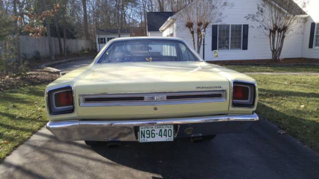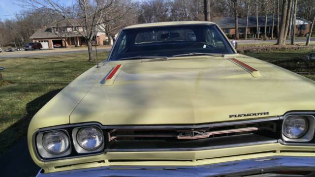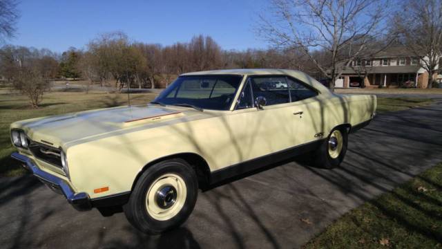 This is a 1969 Plymouth GTX with approximately 50% original paint and original upholstery, door panels, bumpers, Bright Work and emblems.The engine is a 1972 Warranty 440 block with original 906 heads, intake manifold and water pump. Options include:track pack with 3.54 Dana 60 rear axle sure grip, console with bucket seats, outside LH remote mirror, 3 speed variable wipers, fresh air hood, am radio, sport simulated wood grain steering wheel and chrome stylized road wheels (which are not on the car but come with it).