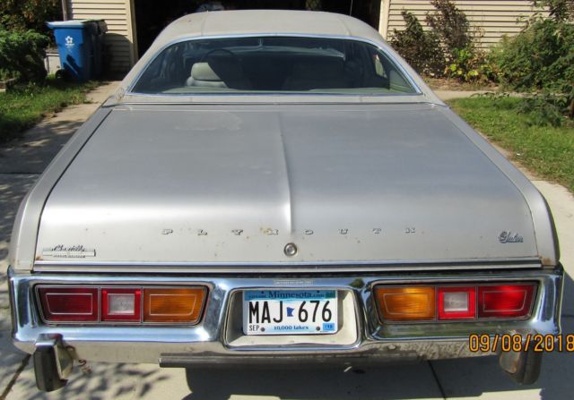 Description of 1978 Plymouth Salon Grey with silver and chrome trim |