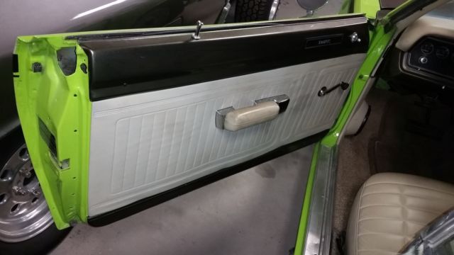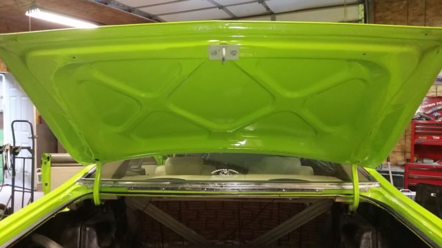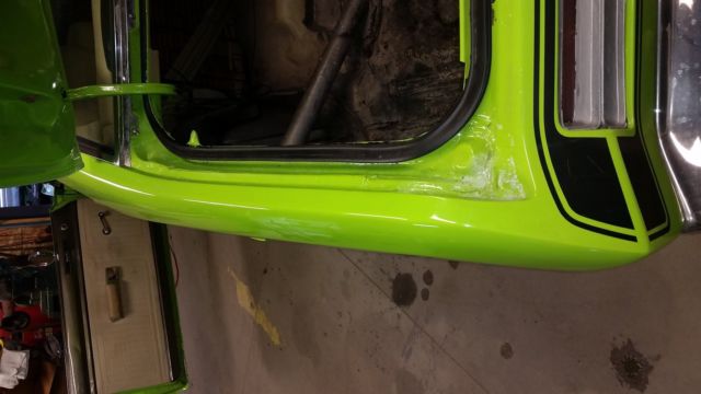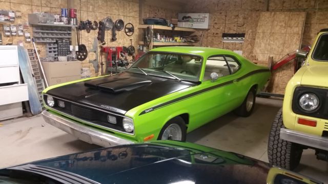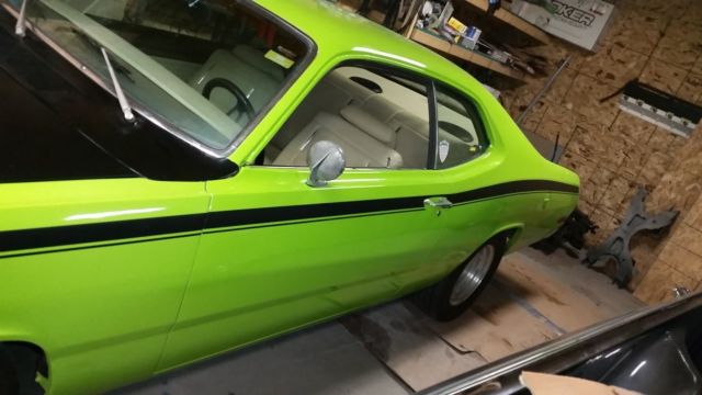 1972 Duster from Alabama so this was a very low rust car. I had to do some panel replacement because it got a light tap in the back passenger corner. I ended up replacing the quarter on the passenger side (1/2 skin) and doing a new tail panel and deck lid. Color is 2015 Hellcat green (sublime). The paint is okay, I did the panel replacement and most of the body work. Ran out of time so i had the paint sprayed at a shop, it has a couple blems in it as i drive it... alot... The car gets compliments everywhere i go. Not a perfect show car butlooks real nice. Last 2 pictures are the worstspots. Body shop didn't finish off the 1/4 very good. Alsoburned through the paint on the top of the fender to primer when it was wheeled out. Interior is custom Leather stitched to look like the factory seats. the dash pad is even wrapped in it. It was $4800, yes $4800 just for the seats, dash, carpet and headliner. So the interior is nice. Has a great stereo in it. Rockford Speakers and Pioneer head unit. The car was originally a slant 6 automatic. I put a rebuilt 360 in it last year. it's .04 over, Hypereutectic pistons, forged 340 rods with ARP bolts, main caps have ARP bolts, Balanced rotating assembly. J heads with 2.02 / 1.6 valves, heads are ported. Head bolts are ARP. Double roller timing chain with Mopar performance tensioner. Dual plane intake with spread bore holley. Mild cam (spec'd out the biggest cam without needing a stall converter) Runs real good. Lot more potential in this motor if you wanted to step the cam up. Probably only 300hp right now. Exhaust is brand new 2 1/4". Has only been on the car a month. sounds great! Trans is a 904 right now. Shifts good. I have a spare that will go with the car. Rear is the 7.25 with some really high gears in it. If you were going to drive the car hard an upgrade would be needed. With the combo that's in it right now I drove to Detroit and back averaging 17 mpg cruising 70.