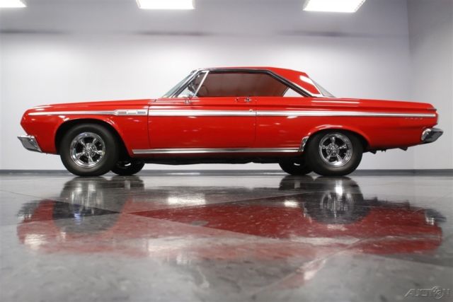 A 1964 Plymouth Fury hardtop with a mean red-on-red presentation and an even meaner 440 V8 under the hood... this is what Mopar dreams are made of. The Ruby Red hue of this car makes it an instant standout. Plus, the straight-edge styling works well on this very fast Fury. The pointed fenders with matching grille are an intimidating callout; the hardtop roofline is unique; and the full-length body crease that wraps around the rear is absolutely sporty. As a true American classic, there's plenty of great bright work like the large wraparound bumpers, and the trim line that has the red, white, and blue markings of the Sport Fury. But the boldest element people will like the most is the addition of 15-inch American Racing alloys that properly fill the wheel wells. Hardtop roofs are great, because their pillarless presentation mean people have easy access to get a peek at the bright red interior. But more than just a desirable and factory-correct red-on-red, there is a lot to see inside. For example, the factory steering wheel and dash are both symmetrical works of art. That push-button transmission is a cool '60s feature. But as you spot the full auxiliary gauge trio and Sun Super Tach mounted on the steering column, you soon realize that your favorite feature is probably under the hood. The Fury is a great car to have because some of Mopar's best motors fit within the fender walls. That's why you can have one with the mighty 440 cubic-inch V8 from later Chrysler street dominators filling the engine bay. Big block Mopar power always looks great, but this presentation is exceptional with the polished air grabber and valve covers. A Holley double-pumper four-barrel carburetor and Edelbrock Performer intake mean a more wicked rumble to the dual exhaust and more power to the streets. Speaking of getting power to the pavement, a stout three-speed automatic transmission gives you reliable shifts during performance driving as well as contributes to the easy cruising nature of this Fury. The color and V8 means this lives up to its Fury name. So don't miss this attractive Mopar muscle classic. Call now!