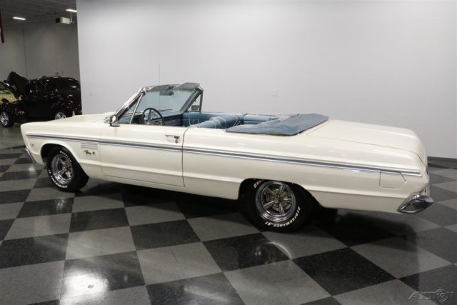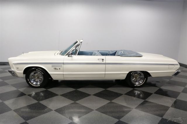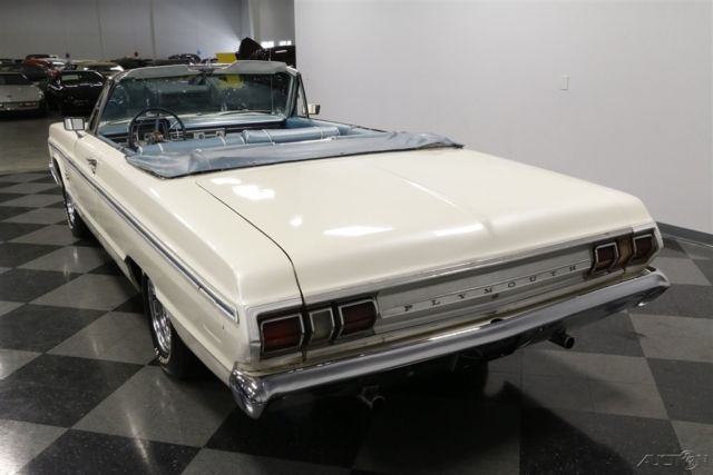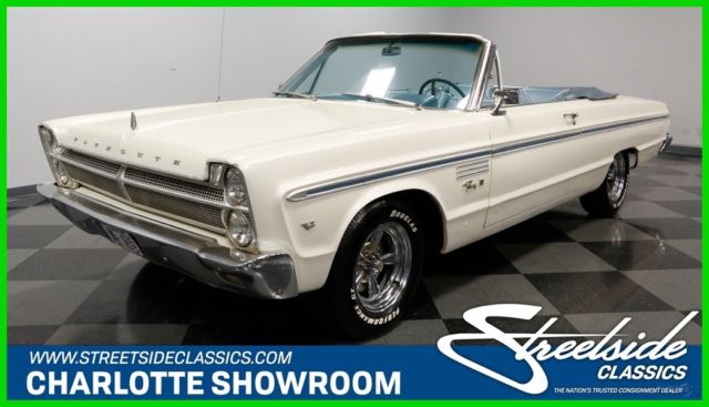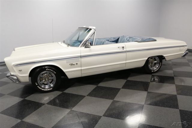 This 1965 Plymouth Fury III convertible is the kind of classic that we're all on the lookout for. With V8 power, original colors, and Mopar's historically low production numbers - only 5,524 produced in '69 - this is a terrific way to get an affordable and distinct drop top. Stacked headlights, wide chrome bumpers, and a blocky stance gave this generation Plymouth Fury an instant presence. Plus, this one has all the right premium trim, including the V8 badges on the fenders. Speaking of trim, the Fury III was the premium version of Plymouth's full-size offering. And this one showcases it so well with the full-length trim that is color matched to the interior. The premium look continues with features like the white electric folding roof that coordinates with the factory-correct paint. And the upgraded chrome wheels are equal parts sporty and elegant. As we mentioned before with the exterior trim, it's a great preview of the interior. In fact, with the light blue convertible boot in place, this total package looks like a seamless blend between the interior and exterior - exactly what you want on a classic cruising drop top. Since this is a full-sized convertible, you know there's plenty of room to take family and friends along for the ride. There has obviously been an investment in keeping the seats looking their best, and the white trim furthers this highly coordinated interior/exterior package. You grab the cool factory three-spoke steering wheel, and in front of that is the full vintage dash, including the familiar rectangular Plymouth speedometer that's flanked on your left by auxiliary gauges. The 318 cubic-inch V8 looks quite honest and correct under the hood, right down to the correct-spec dual barrel carburetor. The light blue on the valve covers and air topper are nice touch. This V8 is a long-standing staple of Mopar power, and so it makes for a robust and smooth runner that still has the legs to pull ahead of traffic when you want. There's even a nice hint of bass from the dual exhaust. Plus, with a three-speed automatic transmission and wide modern tires, this Fury III is a fine boulevard cruiser. A well-coordinated and affordable classic convertible is always an appealing idea. So when it's also a V8 Mopar, you know it's an irresistible deal. Call now!