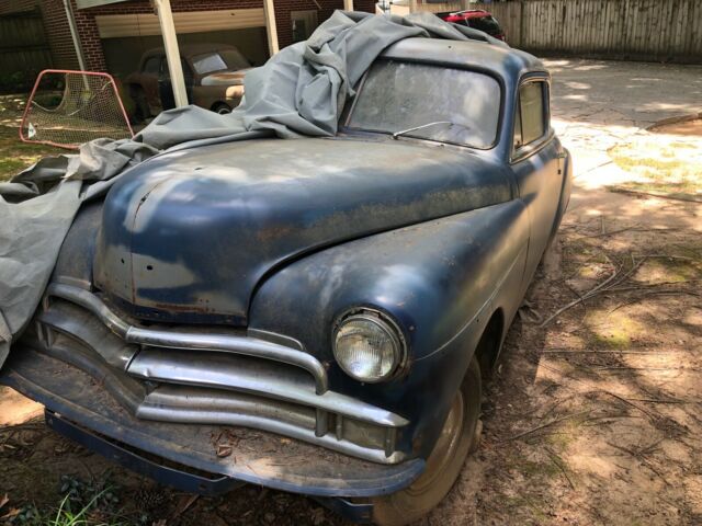 Looking to move on a pair of 1950 Plymouths and a pile of parts. The first is a pretty beat up Deluxe 4 door (black/rusted). It has been gutted, but does have an original straight 6 (hasn't been started in 3-4 years), disc brakes in the front, and new shocks all around. The second is a very in tact Deluxe 2 door Fastback (blue). It has a nice patina on it that has been clear coated, no engine, and repaired floors. The dash is all original. In total, I have 4 bumpers, two extra doors, fenders for both cars, plenty of trim to complete either, and 3 complete sets of hubcaps. or either car. In total, the parts are worth more than $3k if parted out, just grew old of the project and looking to recoup some losses. HAVE to come pickup both vehicles. |