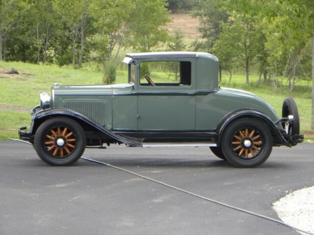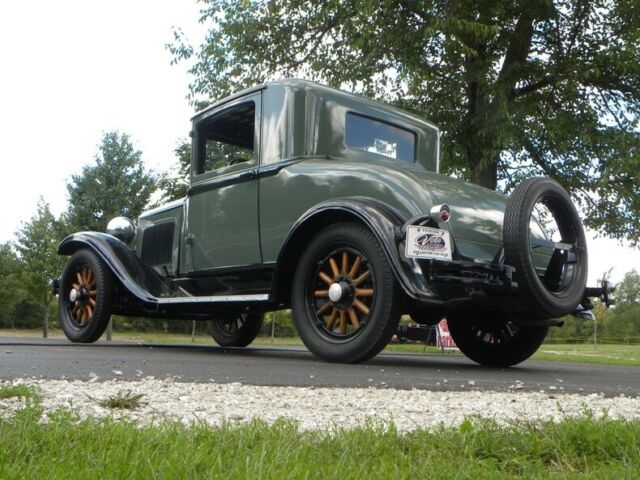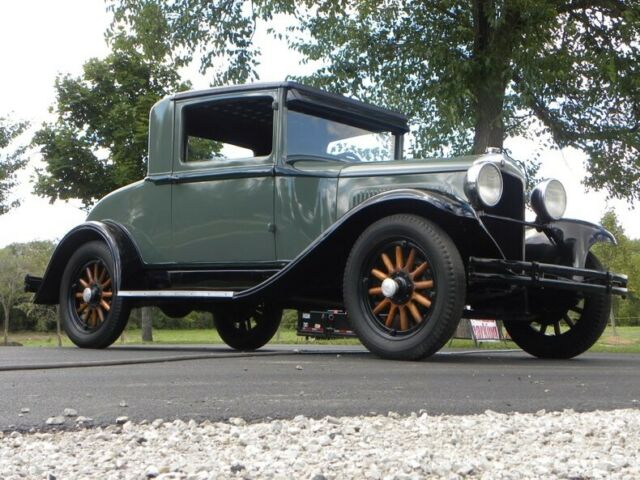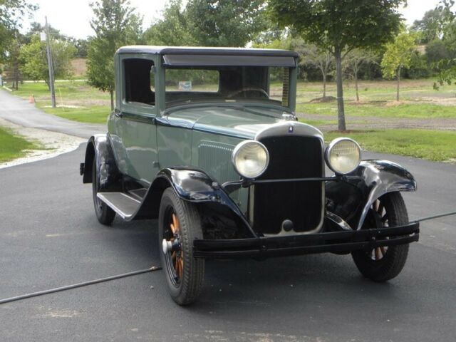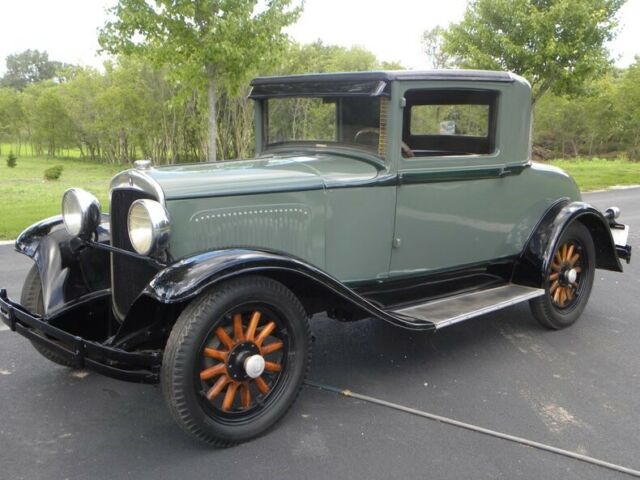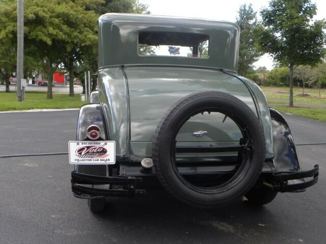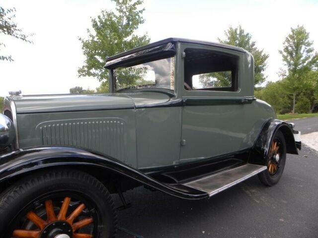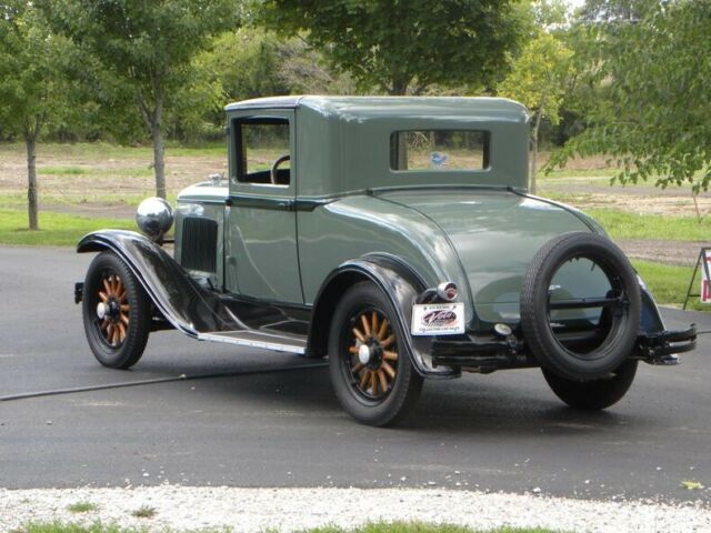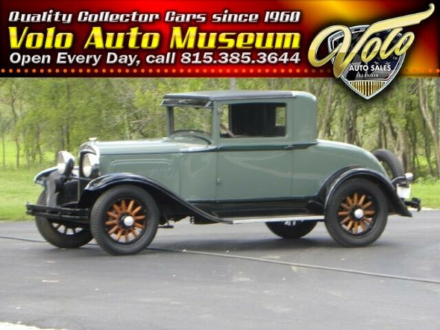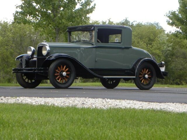 Plymouth was born in 1928. 1929 had an improved 4 cylinder Chrysler engine 45 HP - changes include the relocation of distributor and exhaust pipe. This little coupe, a wonderful entry-level car for one who deserves the 30's classic look. Plymouth for 1929 was very simplistic in style and design; more interior room than the model A Coupe with hydraulic brakes. This one recently painted 2 tone moss green with black. Presentable chrome, wood wheels, varnished and present like new.... 4 cylinder engine runs and drives good with cruising speed 45-50 mph. New leatherette (black), seat. Interior needs headliner and kick panels. A great fun classic look roomy coupe. Call our classic car division at 815-323-6536 for more vehicle information. Hydraulic Brakes (4 wheels) Rear Mount Spare Trunk Model Coupe Like New Wood Wheels Varnishes