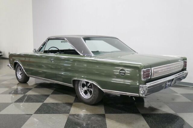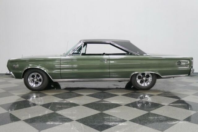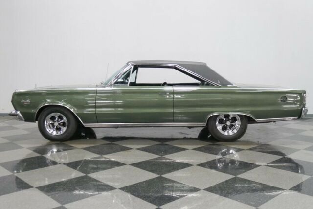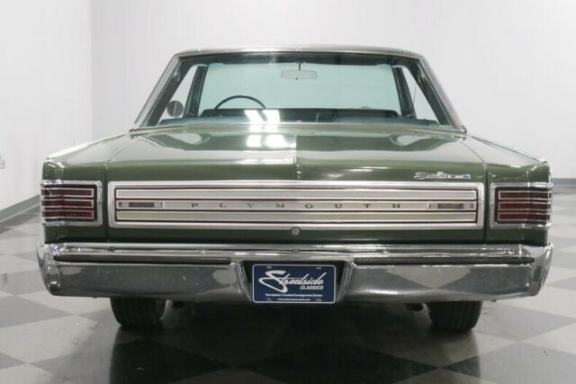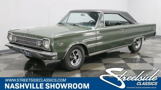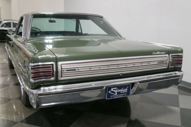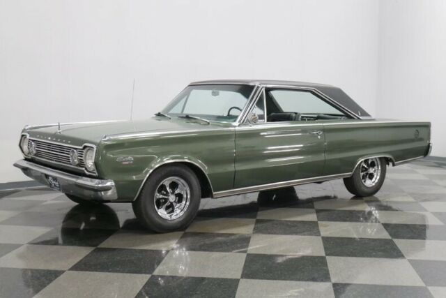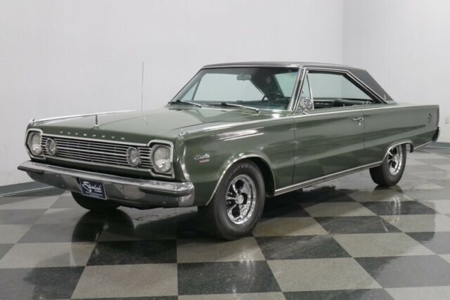 Chrysler intermediates are versatile, good looking, and great for road trips. There's ample room for you and three friends on a long haul or six in a pinch. This 1966 Plymouth Satellite is a great Mopar example with slick cosmetics, factory A/C, a time-capsule interior and a 361 V8 inch mill under the hood. The deep, dark green paint is a faithful respray that was correctly applied several years ago, and it looks great on this Satellite.... It's a clean body with even gaps and crisp lines, and the factory cantilevered roof line simply looks fantastic from any angle. The GTO got scoops and stripes, but the Satellite keeps it more subtle with a flat hood and not a lot of flash to attract unwanted attention. Paint quality is higher driver-quality, a little better than your average cruise night special, and since you don't see these very often, even the subtle color is sure to get a lot of attention. Both bumpers are very nice, the grille is sharp and the tail panel is finished exactly as it should be. A very nice vinyl top adds a touch of sophistication to this Mopar and the beautiful shiny trim that stretches along the tops of the fenders makes this car look long and low. Last but not least, the restorer NAILED the stance, because this car sits perfectly! Inside, you're greeted with black bucket seats and a time-capsule interior that's the direct result of a vehicle with only 89,884 believed to be actual miles on the clock. Black vinyl buckets are the preferred interior in any muscle car, and the "Western Scroll" treatment given for the '66 Satellite provide a very dressed-up look. The original gauge bezels are in excellent condition, and are joined in the dash by a factory AM radio that remarkably still works. In the center of the dash and underneath you'll find a set of vents for the factory A/C system that's a fantastic option to a car built for road trips, and it's still pumping cold R12 air into the cabin. Plush black carpeting is on the floor along with embroidered floor mats that look great. There's a beautiful ornate factory center console between the buckets and with door panels that carry the same "Western Scroll" pattern as the seats, clean sill plates, bright armrest bases and more, it looks very polished indeed. In the spacious trunk you'll find a set of correct mats and room for a three-week road trip. Get packing! All signs point to this being the original motor still in the car. The Commando 361 V8 under the hood is factory-rated at 265 horsepower and runs great. Other than the usual signs of maintenance, the engine has a virtually untouched look featuring a black snorkeled air cleaner, original valve covers, and original components everywhere you look. Factory HP exhaust manifolds pass on exhaust gasses, an original A/C compressor keeps you cool while a big radiator keeps engine temps under control. Power twists back through a stout Torqueflite 727 3-speed automatic transmission to the 8.75-inch axle out back, a combination that's been proven over the decades, and power steering moves the vehicle with relative ease. The exhaust may very well be original, which might be the car's biggest testament to originality, and the floors are solid and honest, albeit not dressed for show. Low-key blackwall radials wrap around Keystone slot mags and look amazing with the rest of the car's exterior. This is the muscle car you want if you're into short weekend drives or longer highway cruises. It's very well-preserved, powerful, good looking, and ready to go. Call today!