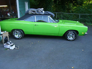 | This car is a runner and a driver. Mechanical work done in 1994 and very few miles on the car since that time. I've owned this car since 1992. All body parts are original on this car EXCEPT the right front fender. It hasn't spent one night outside since 1994 and was in the rain one time since then. When I bought it. it was a former Palm Springs car. brought up to Portland by it's owner along with his many other cars. It was originally bronze. with a bronze vinyl top. The interior was torn up from the sun. ot much left. I decided to change colors. I have an original two-tone green interior in decent shape ( all needs a good cleaning as it's been sitting around over 20 years) except some torn seams in the drivers seating area. all else is pretty nice. The parts missing on the inside. I HAVE. they were removed for restoration that I have not finished. I have the original back seat for the car too. it's included as well. I will put it in the car for shipping purposes. I have some extra parts that will come with if the buyer wishes. All body parts were original to this car except the right front fender ( which was hit again. and I replaced with a Road Runner fender) and the paint was original on the entire car except that fender. Car had minimal rust. but plenty of dents. I replaced the ugly bronze vinyl top with a black vinyl top of the proper type for these cars. The engine was not numbers matching and had domed pistons. so high you couldn't run it on pump gas. I bought a numbers matching very rusty 1969 Road Runner for a parts car in about 1993 . nd used that engine for my rebuild. It was the correct factory high performance 383 from a numbers matching Road Runner. I put new purple cam in it. the proper one for that engine. also did a lot of work on the heads. all new guides. most valves were new also. It was bored . 030 over and had 8. 5:1 pistons all in real good shape. So. it's all factory inside with the exception of the compression. It runs on 87 octane. I have the build sheet from that car as well. showing this engine number. Engine was rebuilt in 1994. car has a few thousand miles on it in all that time. I painted the car in 1998 because I didn't want to see it in bare metal and body filler without some protection. This was just to be protection and I would go and do the final paint job later. with a few details taken care of that I hadn't done. like seam sealer. it has the old still in the seams. not too bad. but I would have done it with fresh for the final paint. and also on the right door an extra hole by the mirror where sport mirrors were on the car when I got it. I think the left door does as well. I still have those sport mirrors and they are included. Turned out good enough for a driver quality car that I decided to leave it alone. Paint is 1970 AMC Big Bad Green ( it's not Limelight) and it is Acme acrylic enamel. Fitting for a Road Runner. right? I have the entire interior. used. but in decent shape. including a new headliner for it. still in the box. a black. uncracked dash pad . nbsp;and also a new trunk mat. It will need a trunk seal as I used it for seating tires at some point and tore it up. The hood insulation pad was new. ice have since ruined it. it needs replacing. It was inexpensive. The trunk floor had some rust. I removed ALL of it with a product called NP7. now called "The must for rust". It took days. but it was clean before I laid some Duraglass in there. I have never painted the inside of the trunk and this Duraglass has been in there since 1994. There were two tiny spots at the base of the rear window and I sand blasted the channel and glassed those two tiny spots. The floorboards were solid with some surface rust. I have sanded and painted those too. The 727 transmission I had rebuilt at the same time as I rebuilt the engine. It shifts very hard. will bark the tires shifting into second at 50 MPH. Also. I had my long time radiator man re-core the radiator with his super heavy duty excellent quality cores. He has done all my classic car radiators which have never had any problems after. I replaced the worn out Carter AVS with a new Edelbrock. looks the same. was perfect until the gas dried up in it. I cleaned it. but feel it needs further cleaning. The gas has never gone bad in the gas tank. no issue there. Comes with all the stuff I bought for it. ncluding a new heater switch. which it needs. unless you want to hook two wires together to turn the heater on like I have done when needed. This was an A/C car with no compressor etc. when I bought it so I went without it. Power steering. ower brakes makes it pretty nice to drive. I put some new parts in the front end ( steering parts) but did not rebuild it as it was pretty tight. Rear end has some play in the gears. ( not what I'd consider real bad) was this way when I got the car. Gears are 3:23. sure grip. of course. I will be here to help load the car onto or into a truck as needed when the buyers payment has cleared. Buyer responsible for all shipping charges after the sale. Any questions I can answer feel free to ask. BTW. left muffler blew a hole in the bottom of it last time I started the car a week or so ago. will need one. They are just turbo mufflers. I have a new one and will throw it in. Tailpipes are crappy in that they are just flex pipe. Pipes from the manifolds are still OK. Left side has an exhaust leak at the flange gasket. Needs two gaskets. I tried it with one when I had the engine out for repainting. I filed the pipe flange flat. looked good. still leaks a little with one gasket. Manifolds are factory high flows in good shape. Car is pretty much all stock. except wheels and color change. I have no more paint for the car. Only reason I'm selling this car is because the Wife and I are building our next home. the money will help and I simply cannot get the time play with all of my toys any more. Please don't buy if you can't complete the deal. As for questions. I'll answer them with as mu