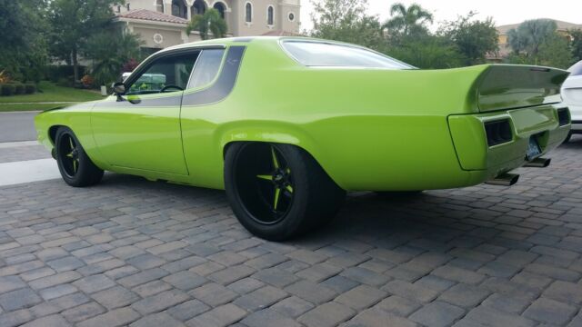 Plymouth Road Runner Pro street "Show Car"VIN: RM21P3G266996. This Gorgeous, Flawless show car has been has been fully RESTOMODDED! was just completed 2018 . Starting with the exterior, the glass is all new and is the trim (moldings). The body modification and work are Magnificent! The paint looks like glass, and the front and rear bumpers have been set almost flush with the car, the rear wing has been molded into the body, (looks factory), custom rear bumper with the tail pipes molded into the bumper. The hood has been modified to fit the BIG 871 blower, but looks factory. The door handles have been shaved off and the doors open with the touch of your fab key, as well as, the trunk. there are also emergency pull handles on either side under the front tire wheel wells, just in case to open the doors. The front grill has been modified for a more aggressive look. The rear fenders have been modified and tubed to fit the Massive Rear Tires: 31x18R20 - Mickey Thompson Sportsman Rear Wheels: 20†– Boyd Coddington 5-SpokesFront Wheels (powder coated Matte Black w/ sublime green accents): 18†– Boyd Coddington 5-Spokes Front (powder coated Matte Black w/ sublime green accents)Tires: 28x10R18 - Mickey Thompson. The brakes are "Mark Williams" - Front Disc, andRear Disc, 3†Exhaust:,Dual Exhaust w/ Flow Master Mufflers, Custom Electric Cutouts (Nicely Mounted)Key Components:- Victory Chromoly Driveshaft- Dual Driveshaft Loops- Huge Aluminum Radiator w/ Dual Electric Fans- MSDDistributor- MSDWires- MSDCoilCosmetics:- Nicely Painted Engine Bay- Shaved & Painted Firewall. Moving on to the INTERIOR: The interior is virtually new, the bucket seats are a suede grey with leather black backs, the gauges are "Autometer racing" white gauges with gloss green inlays to match the exterior, the dashboard is "PERFECT" and black, the carpet is new, the "GREEN MACHINE" has a 12 point roll cage that is welded to the frame not the floor board, the paneling around the interior is custom " one off" with the Chryslerlogo in the rear, Suede Headliner Is In Great Shape. All the interior lights work, there is a MINOR defect on the drivers side handle, but certainly not noticeable. POWER WINDOWS. She is a Manual 3 speed with a reverse hurst shifter. The TRUNK: the trunk has a racing fuel cell "16 gallons" with a battery on either side ENCASED IN CHROME HOUSING. the trunk surface is lined with the DYNOSHEILD. The battery cut-off switch is nicely tucked under the rear bumper "hidden". The Racing fuel cell is also in the trunk made by "HUGE BARRY GRANT". BUT, all of that is hidden by a custom leather formed casing to look streamline, very well appointed!! By the way SIGNED by "CHIP FOOSE" at a car show that won first place. THE UNDERCARRIAGE: this was a frame off restoration, so the undercarriage looks just like the body, SUBLIME GREEN and FLAWLESS..THERE IS ABSOLUTELY NO SHOW OF RUST ANYWHERE ON THIS CAR!! Mechanics: New Mopar Performance 440ci V8 Mega Engine BlockINDY440 Aluminum Max Wedge Heads- Engine Casting #: 2468330-M-Stroked to 446ci-Blower Shop 8-71 Blower- TTIHeaders- Modern Performance Block- JE Piston- Manley Rods- Eagle Crank- Complete Blower Cam (flat tappet)- Gear Drive- ATIDamper- Balance Suffix and Blue Printed- BG Fuel Pump- 8:1 Compression RatioDual Holley 4-Barrel Carbs- 950CFM- Dual Feed- Mechanical SecondariesFreshly Rebuilt A727 Torqueflite 3-Speed Auto Trans (#: PK3631867 4946 3070)- Built By ProTrans- All Aluminum Internals- Reverse Manual Cheetah Valve Body- Ray Bestes Clutch- High Energy Front & Rear Bands- Hughes Heavy Duty 3000 Stall8 ¾†Mopar Rear End- Ratio: 3.93:1 w/ SpoolFront Torsion Bar SuspensionRear Leaf Spring Suspension- Cal Tracs The body of thiscar was media blasted, corrosion-protected with steel phosphate, epoxy-sealed, prepped, and then finished in two-stage Sublime Green base and clear polyurethane paint. Rear-wheel tubs and a 12-point roll-cage were added and exterior body mods include narrowed and tucked front and rear bumpers, a laser-cut Chrysler Pentastar grille and scoop inlays, Halogen head and fog lights, shaved handles with keyless entry, integral front and rear spoilers, and rubber items from Year One. Underpinnings include a new, powder-coated chassis, K-member, and control arms, plus Koni adjustable front and QA1 adjustable rear shocks, a braced Cal Track 4-link, and a Mark Williams narrowed Chrysler rear end with chromoly drive and axle shafts, and Richmond 3.911 gears on an MW spool. Brakes are MW 4-wheel discs, plus a new master cylinder with line-lock and all-new lines.this Road Runner was selected as a Feature car at the Mopars at the Mansion show, held at the storied Playboy Mansion, and it was a cover subject and centerfold feature car in Mopar Collector's Guide magazine. So, As you can see there has been a lot put into this Beautiful SHOW CAR. She was an over $300k build, but as we all know you cant get what you put in. I am offering herpriced to sell$110k, or best offer.please feel free to call me at (954)817-9440, please not after 9p.m. est for that I have children, or email me atcohenj@bellsouth.net, The sale of this car is an "AS IS" condition, but she runs GREAT and is extremely POWERFUL!! so good luck 1973 Plymouth Road Runner RestoMod, 440 ci motor bored and stroked, with 2 x 950 Holley double pumpers, TTI ceramic coated headers, electric dumps, custom blow off valves with catch cans, INDI heads and manifold, 871 "Blower Shop" Blower, xtra large " BE Cool" radiator, Brand new master cylinder and brake lines, Flawless "sublime green body paint", interior is in excellent condition, headliner like new with working header light, power windows, Caltrex sway bars, Mark williams rear end, brand new Mickey thompson rear drag/competition tires, fresh powder coated rims, 3 speed reverse Hurst shifter, Auto light gauges, I sent the motor to South Carolina last year to be rebuilt ( new pistons, new springs, new cam shaft, and detuned) wanted a more driveable