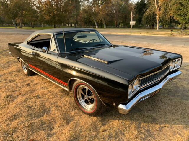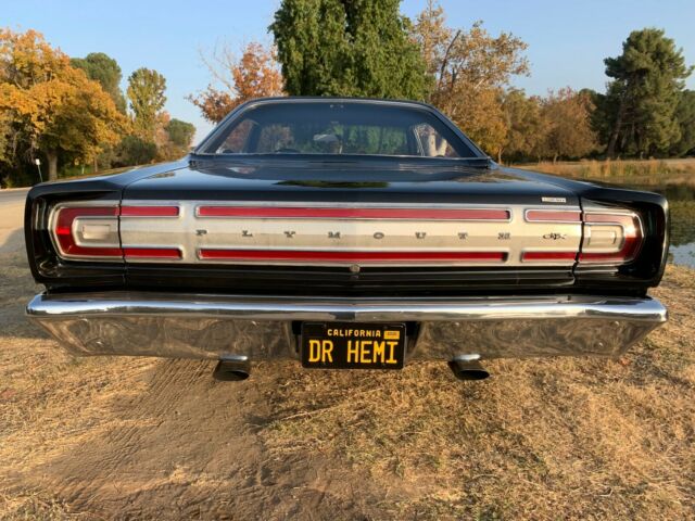 1968 Plymouth GTX 2 dr hardtop, 426 Hemi 2X4 bbl engine, 425 hp, 490 ft-lb torque @ 4000 rpm, Hurst 4-spd manual transmission, original J code Hemi car, engine is not numbers matching however has a period-correct Hemi engine installed. One of only 234 GTX Hemi 4-spds produced for 1968 !! I have owned this car for 18 years and have driven it less than 1500 miles in that time. The two Carter AFB carbs were rebuilt by the Hemi carb expert Dick Katter of Katter Carbs and hemicarbs.net in Manassas VA, and are in excellent condition. 3.23 Sure-Grip Differential, Electronic ignition (hidden), makes this car more drivable on the street. Factory tachometer (reproduction that works), AM radio, no power steering, no power brakes. Temperature gauge and Road Runner horn do not work. Black exterior paint, red side racing stripes, black vinyl roof and black vinyl interior, bucket seats and front seat belts. Houndstooth trunk mat. American Racing 15" Pentastar Road wheels with BF Goodrich Silvertown Redline radial tires. Includes Operator's Manual, Service Manual and 1968 Plymouth Heart front license plate as well as a reproduction window sticker/MSRP label prepared from the fender tag data, which shows an MSRP of $4695 in1968. Has just been tuned up by my mechanic with new spark plugs and brakes installed. California Special license plates from 1960s (black w/gold lettering) and a clear title. Vehicle is sold as is with no warranty expressed or implied. A time machine which will give you a taste of bone stock 1960's American muscle ! I have owned this car for nearly 20 years and it is a lot of fun to drive, truly a trip back in time, I think you will enjoy driving it too! VIN: RS23J8G167781 R - Car style -Plymouth Belvedere, S - Price class (Special), 23 - Body Style (2 dr. Hardtop), J - Engine Code (426 Hemi), 8 -Last digit of model year, G - Assembly Plant code (St. Louis, MO)