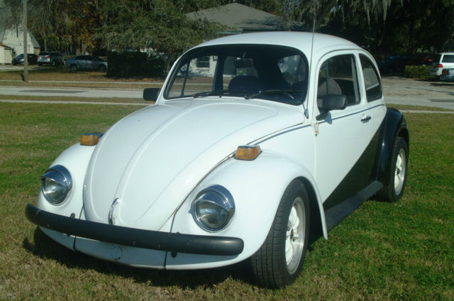 | Looking for a fun ride that turns heads? Look no further. This modified 1969 VW Beetle Classic features a eye-catching two tone paint job. custom wheels and tires and a amazing sound system. No. it's not 100% original. We've updated several things: the paint. sound system. mirrors. tail lights. door handles and ignition system. We have gone to great effort to make sure this classic survived and was fully functional and ready for a fresh life in a new world. Maybe it's your world. Bid now and see. |