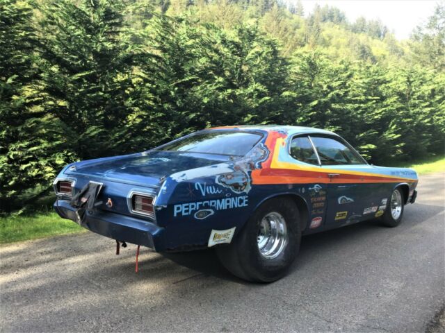 1970 PRO STOCK DUSTER This is known as a body in white. Chrysler Corporation sponsored various successful drag racing teams to promote their cars. When a normal Duster came off the assembly line, it was a finished car and had designated serial or VIN numbers. When the factory donated the cars for racing they took the cars off the assembly line early, before the cars were finished and these had no VIN numbers. Thus, it is called a "body in white". I have owned this car for 10 years and strangely, I do not have an interest in drag racing. The previous recluse owner, had this in his large collection for 30 years. The Duster ended its racing in about 1979. It started racing in 1970 with the 3 point roll bar. As NHRA rules changed, the 3 point roll bar was added on to comply. In the early years (1971-73) the drag teams would upgrade tail lights, grill etc, to look like the latest new body features. This Duster received those changes. The gold anodized sheet metal was some of what was added later. Up until its retirement in 1979, it was always raced with a 426 Hemi and a 4 speed. Both were removed in 1980 before the previous owner purchased it. It retains the original date coded late 1969 Dana shortened rear end. Much of the car retains its early build including the October 1969 date coded 6 cylinder radiator. It has the original front drum brakes, that were common in 1970 due to being lighter than disc brakes. (Early books on Sox & Martin's 1970 Duster, for example, clearly show drum brakes). This car is from the dawn of Pro Stock. Install a Hemi and 4 speed and this will reflect the early history of Drag Racing. Interesting note, "BIG DADDY" did do some art work on the trunk. PLEASENOEMAILS OR TEXTS CALLS ONLY 503-312-0822 |