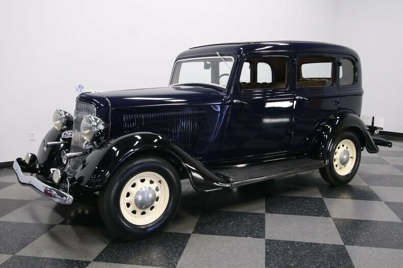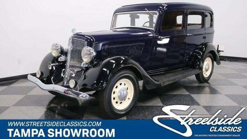 We know why you're looking at this 1934 Plymouth Sedan. It has a sleek style and terrific details (like double sets of rear-hinged doors.) This is the one for those who want a car that reminds you of a bygone era with every inch. There is a terrific gloss on this sedan that shines as bright as your nostalgia. You can tell there was a nice restoration investment here at some time. And as you get closer, this reveals some terrific details. It may look all-black at a first glance, but when the sunlight really hits it, you see this is a two-tone dark blue body with black on those curvy fenders. And the vinyl roof is done in black, too, for a correct and intricate appearance. Nothing on this sedan looks out of place - from the waterfall grille, to the curved bumpers, to the Plymouth taillights. And we love the contrasting white wheels with correct spare in the continental kit on the rear. An all-steel, original-style Plymouth is a true rare gem. After all, you see more Fords and Chevys from this era at car show, and the remaining Chrysler products are often taken for hot rod duty. So you're going to get a ton of attention for just remaining so correct for 85+ years. No matter if you're out for a drive or going to a show, people will take notice when you arrive. After all, they will marvel at the double set of rear-hinged doors. And inside, all the right pieces are in place for a correct classic. You get two spacious rows of benches and metal painted to look like nice wood trim. The seat cloth was certainly given the right attention with a plush button-top presentation. And you'll love all the details, right down to the tilting windshield for ventilation and the AM radio that's on display. Classic motoring means a large grippy steering wheel and a tall gearstick. Plymouth also did a terrific job with the gauge package in the mid-30s to give you added info. When you look under the hood, you get more of the originality that gives this sedan its charm. The 201 cubic-inch inline six was part of a new revolution at Plymouth, and this looks amazingly correct and authentic. The silver head, single-barrel carburetor, and oil bath air cleaner are all reminders of how travel used to be. The three-speed manual transmission shifts easily, and out on the road the clean and well maintained chassis is another reminder of the solid investment in this sedan. This is a well-respected Plymouth of distinction. So if you enjoy true classic motoring, call today! |