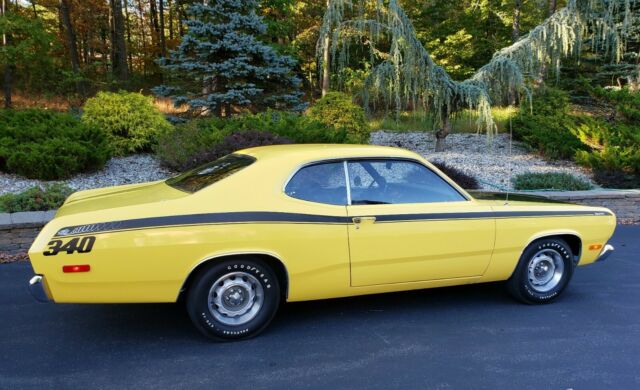 They are original only once. Fully documented 340 4-speed, Sure Grip Traction Lemon Twist survivor with only 48K original miles. History back to first owner. Multi-magazine feature car, Chrysler Nations special invite and Year One cover car. All original paint, interior and full matching numbers drive train with no rust ever. All factory delivered paperwork including window sticker, 2 1/2 build sheets, owner's manual, dealer invoice, warranty pamphlet, accessory catalog, and a dozen more documents that a buyer would receive when buying a new car. Even the brown plastic glove box bag that contained all of your paperwork as you drove off the dealer lot is included. When was the last time you saw one of those? When nearly new, the owner added a Sun tachometer and tube headers as we all did back in the day. The headers have since been removed and replaced with the original exhaust manifolds and period correct exhaust system with chrome tips. I left the 40 year old tachometer in place because it's so cool, AND STILL WORKS! Mechanically in excellent, well cared for condition with numbers Thermoquad carburetor. The body and paint are stunning, but the car does have some minor paint chips here and there and a couple of shallow door dings as one might expect from a car that is nearly 50 years old. Included with the purchase are most of the original soft, wearable parts like plug wires, hoses, belts, fuel pump, etc. This car was originally order with black steel wheels and dog dish caps which also come with the car. Repro car battery shown in picture has been replaced with correct fitting modern type battery. Survivor mopars like this one usually spend their time in museums or in high dollar collections and rarely come up for sale. Now is your chance to own a piece of automotive history. Note that car is being sold in "as-is" condition. Inspections are welcome before the auction ends. A $2000 non-refundable deposit is required immediately after the auction has been completed, and the balance is due within 7 days. .