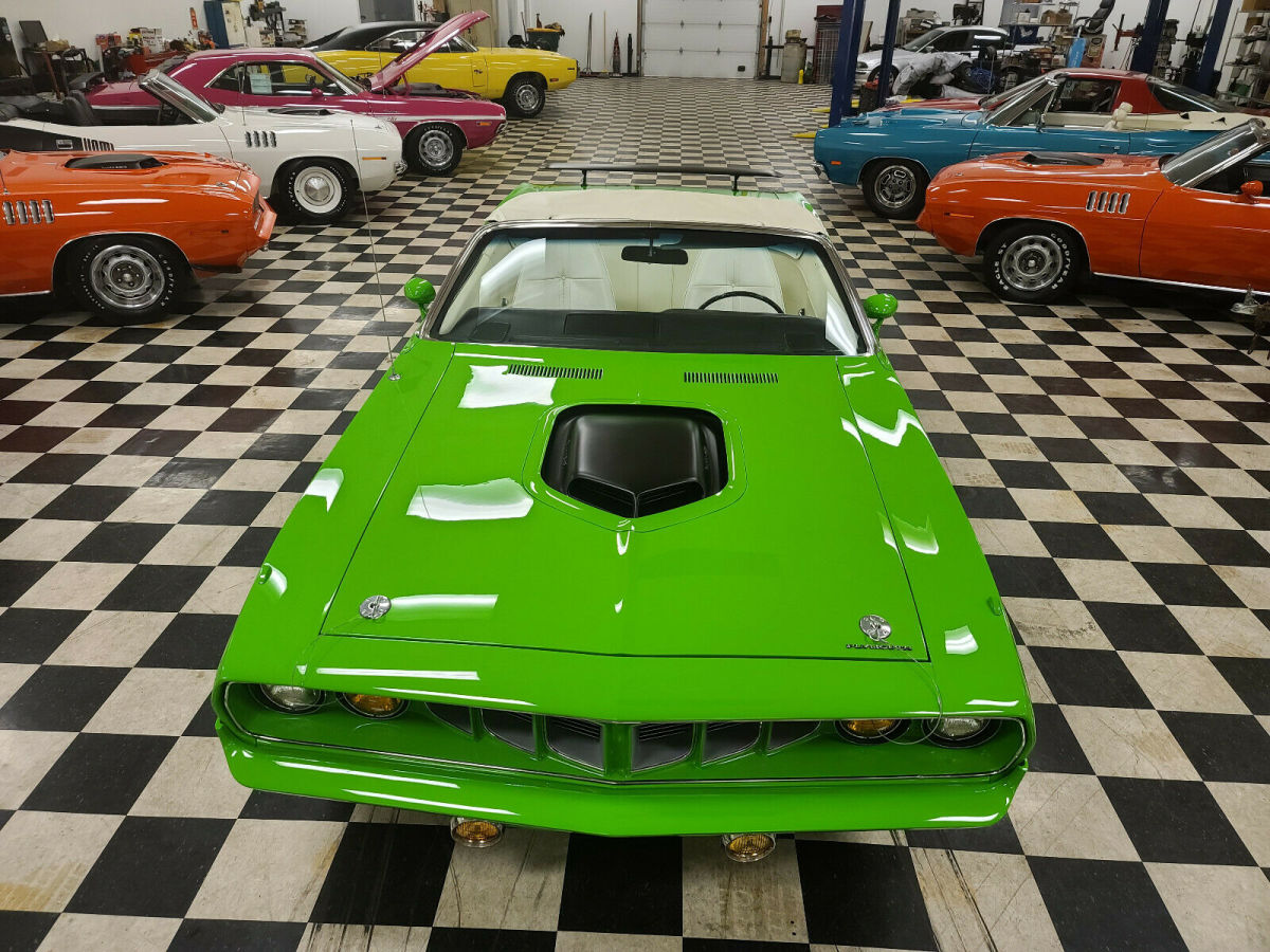 No Reserve!!!.... Last week, I sold a Panther Pink Ta to a wonderful Gentleman in Texas... A special car to a great guy!!! It sold quick... This week another special car..Sassy Grass 1971 340 4 speed matching numbers engine with the original fender tag. The car has been featured in National Magazines.. Its rare to the point that of the 30 4 speeds made in 1971 that were 340 convertibles, this is the only one that was "sassy and white" to my knowledge!Less than 3 percent of these cars came in this wild color. Both Panther Pink/Sassy Grass came out in late 1970. Both are considered at the top of the food chain in desirability for mopar colors.This car had an extensive restoration, that truly brought out its beauty. This is not a clone!!!! She's the real McCoy!!! One of 30 340 4 speeds with original paint color fj6...d21 on original fender tag!! Please call 5852980283 Bob. I reserve the right to end auction early......... No Reserve!!On Sep-09-20 at 19:31:49 PDT, seller added the following information: I've had many calls and questions on this car. First off, its a real sassy 4 speed white interior car!!yes... matching numbers engine car. The transmission is not. The shaker, and some of the other elements were added; however,the owner of this car put a ton of great options that cost a lot of money. The car drives incredibly. I offered over 200 k for this car years ago. The owner out of Connecticut stated no.The only reason Im selling car involves a recent purchase of a purple cuda convertible.You just won't be able to get a car of this color desirabilit, in the most iconic 71 cuda model convertible thats a 4 speed in white interior!!!...dont hesitate call me5852980283 Bob
