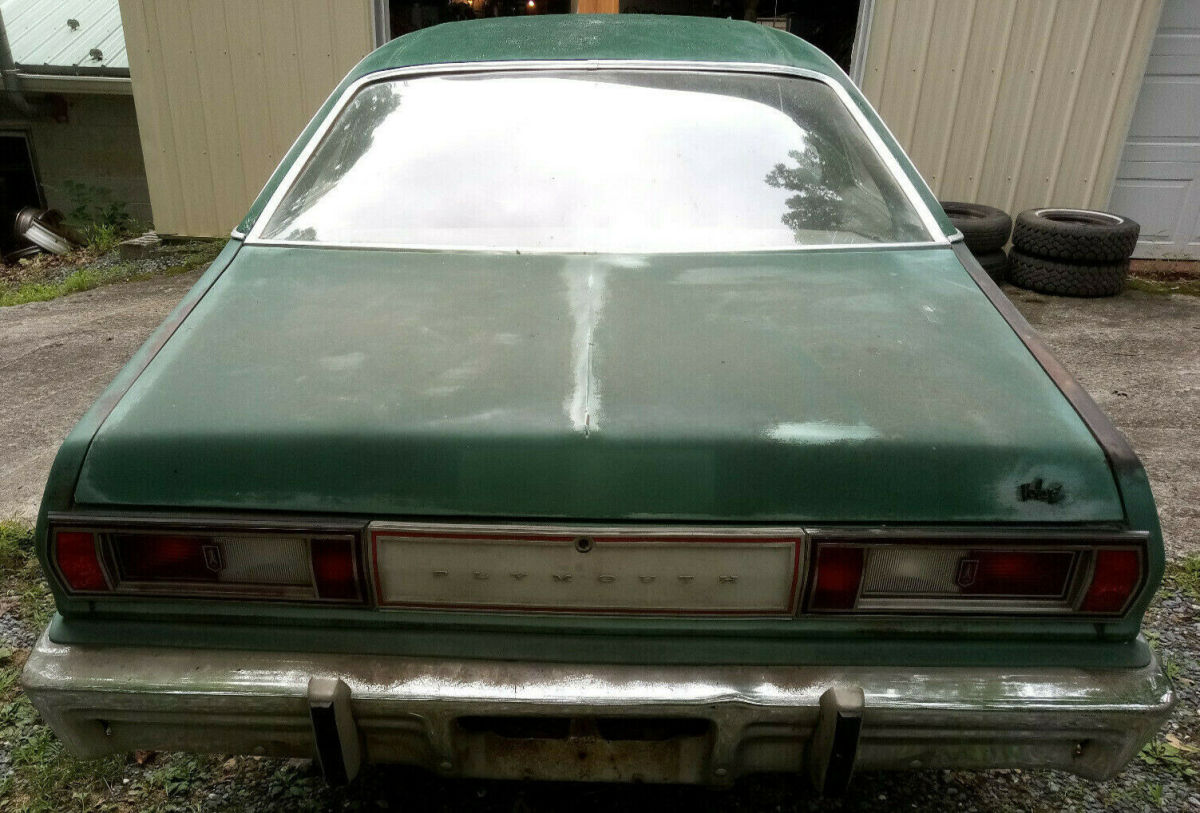 1979 Plymouth Volare 2 door. Triple green beauty! ! ! This is a great project car. Currently rolling on 15" cop wheels and great radial tires. Original slant 6 auto . Was converted to 318 auto. Project car with NO ENGINE OR TRANS. Included with sale is stock interior as shown, a pair of Schumacher conversion small block engine mounts, two very solid fenders,rear side window louvers, and a set of Aspen/Volare bucket seats with center fold down arm rest. Solid floors and trunk. I repaired the rust in front frame rails. Floors and rear rails are solid. PA title in my name. Inquire with any questions and I will respond ASAP. $2500 Will consider fair offers.Thanks for looking. $250 NON REFUNDABLE DEPOSIT via PAYPAL. CASH for balance at time of pick-up. NO TRADES. |