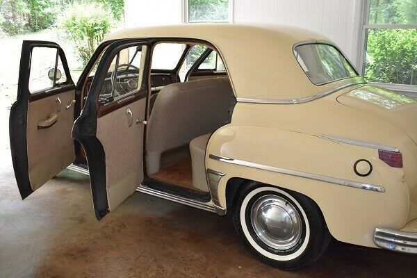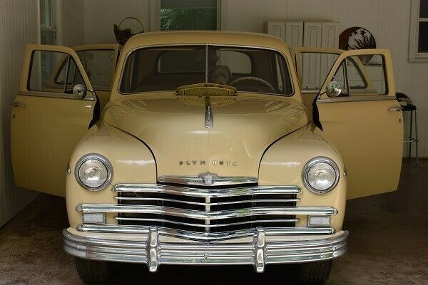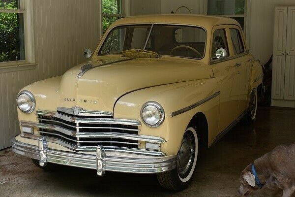 1949 Plymouth Special DeLuxe P-18 4dr Sedan . 218 cu in (3.6 L), 97 bhp (72kW)@3600 rpm, inline-six 6-cylinder engine3-Speed Manual TransmissionVehicle ID Number: I2223599Body Number: 705-71315Engine Number: P18172027Odometer: 70626 mi This is an amazing find that won't require much to be on the road again! It is time to let this beauty go, so don't pass up a once-in-a-lifetime opportunity to own an incredible and solid antique car for only $7,000!!! THE GOOD: It has the 218 cu in inline-six engine and a 3-speed manual transmission. The body is in great shape and was painted about 6 years ago. The interior is also in great shape with all its knobs and handles, and all windows and doors work fine. The front and back upholstery are refinished and look wonderful. The battery is brand-new and the headlights, tail lights and panel lights shine nice and brightly. Also included is the Plymouth Service Manual (the 319pp mechanic's guide from Plymouth.) THE BAD: There are some chrome pieces which are showing wear after 71 years, but they are all there. The license plate light on the rear is cracked. The driver's side front window is cracked but has never shown any issues with opening or closing the door. The vehicle will turn over but isn't getting fuel to start. THE UGLY: This gem is being sold for only $7,000. A minimal investment can immediately turn it into a running vehicle. But it is time to clear out the space in the garage, so we are letting go of this beauty for a low $7,000!! NOTE: The silver lab photo-bombing a few pictures is NOT included with the Plymouth. ;-) |