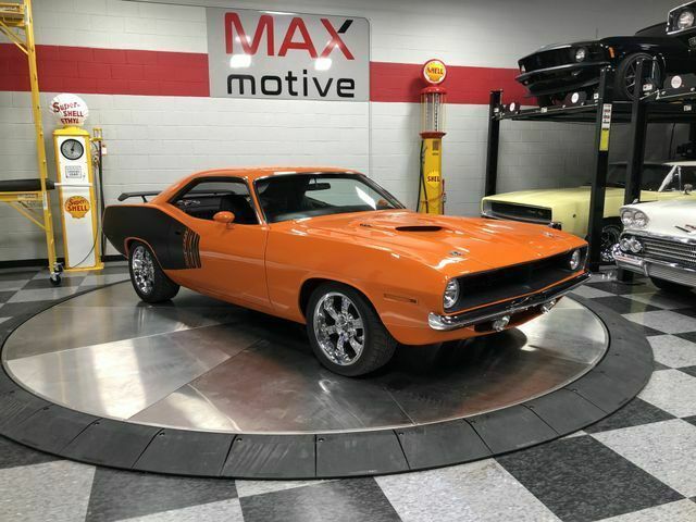 It’s a 1970 ‘Cuda. It’s orange. And yeah, it’s got a Hemi. This amazing restomod is just for you if you’re looking for extreme performance, easy driveability, and classic good looks. Superior engineering and execution render this build a true standout. 528 massive cubic inches of elephant motor reside under the twin-scooped ‘Cuda hood. Hardware is important, but the people behind it make it go. Bob George Racing, a well-known and respected Hemi specialist in Eighty-Four PA, painstakingly assembled the engine using the best components available, including aluminum heads and intake from Indy Cylinder Heads. The heads and intake are critical to making power, and Indy Cylinder Heads builds the best anywhere for some of the most famous clients and projects in the high performance world. They are dedicated Mopar experts! The latest technology makes this beast perform. You’ll find most of the fast guys on the street and the track using laptops to dial in the optimum tune. The laptop, already programmed and downloaded, comes with the car. Working with a Motec Fuel Injection system, the Hemi starts and runs great. But custom headers and 3-inch dual pipes, along with the ultra-performance components inside the motor, provide plenty of attitude in the exhaust sound. You’ll also appreciate that this is a clean, straight car. The doors open and close easily. The Vitamin C paint looks beautiful with the contrasting black billboards. And the interior is restored to original specs. Except for a super comfortable Grant GT steering wheel, the driving environment is all 1970 ‘Cuda. Even the center console and Slapstick shifter are where they should be. Extras provide functionality without intrusion. For example, the Slapstick operates a 727 Torqueflite complete with a B&M shift kit, but under the dash, you’ll find the module for a Gear Vendors Under/Overdrive that adds ratios and driveability making the car even more versatile and enjoyable. That little red button? That’s the line-loc. (We all know what that’s for.) The toggle switch? That gives you direct control of the electronic fuel pump. And just so you have it all, a Pioneer sound system is neatly installed for those rare times when you’re not listening to the Hemi. This 1970 ‘Cuda remains true to its roots, and this being a highly revered E-body, that’s important. Yet high tech upgrades such as LED lighting keeps this ‘Cuda in step with current trends. You can enjoy the latest in high performance hardware meticulously assembled by true enthusiasts renowned as experts in their field. A big 3-ring binder is full of helpful photos, receipts, and instructions to help you operate the car and to outline its history. The Hemi billboards and rear wing are the kind of details that nicely complete the build, plus send a flag-waving Mopar message as an invitation to the faithful and a warning to any would-be opponent.